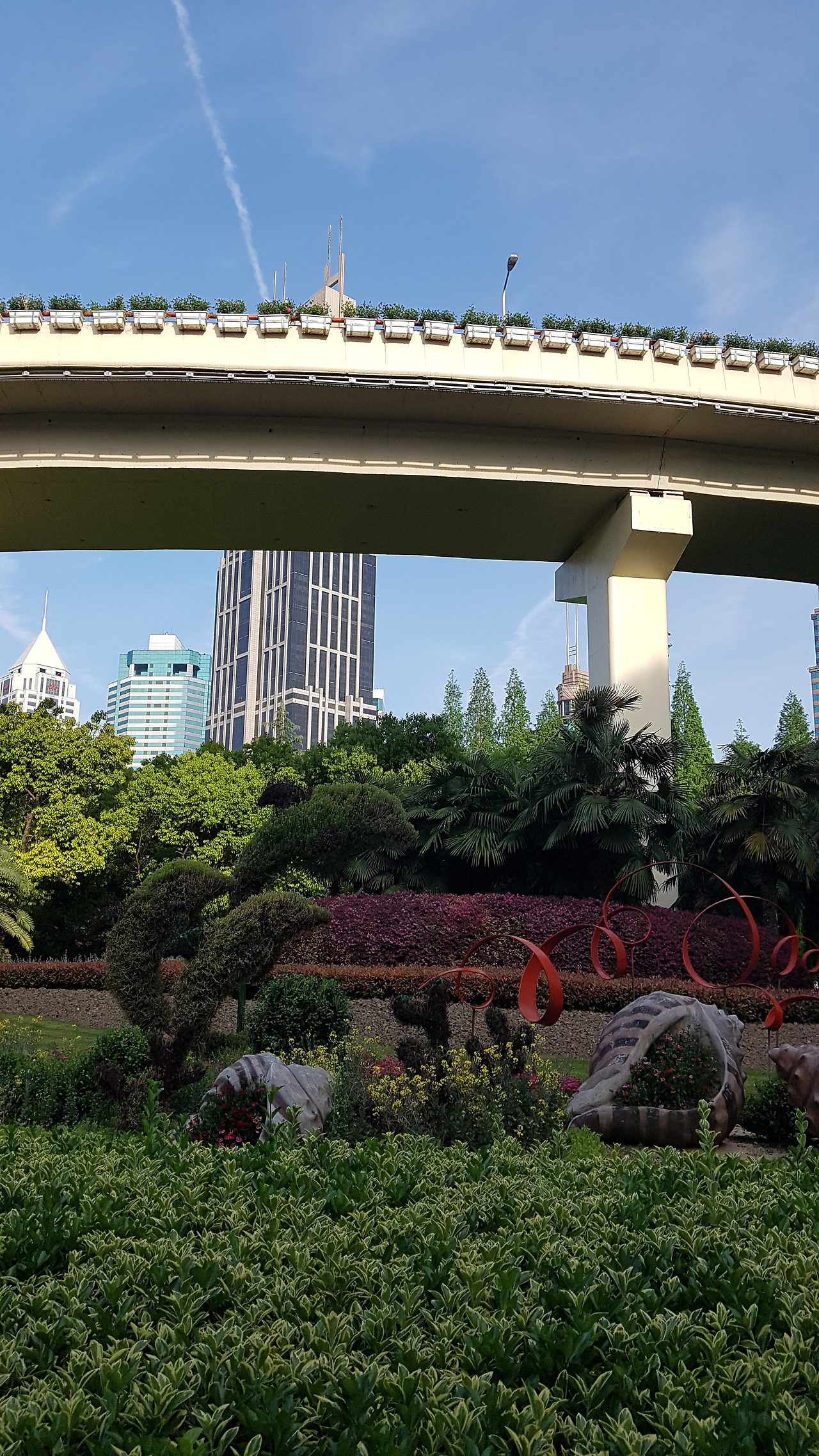 익숙하지 않은 길로 다니니 못 보던 볼거리들이 많았다. 예를 들어 집에서 황피난루 역으로 가는 길에는 아주 큰 고가도로가 있었고, 육교를 건너는 길에 위 사진에서 보는 것처럼 예쁘게 조경을 해둔 구역이 있었다. 또 아파트 뒤쪽에 있는 옌안공원(延安公园)도 만약 이 길로 나와보지 않았다면 발견하지 못했을 풍경이다. 이 길로 다니면 집에서 신천지도 꽤 가깝다는 사실을 안 뒤에는 심심할 때마다 바깥 산책을 나갔다. 마음이 우울하거나 오래 걷고 싶을 땐 프랑스 조계지에서 집까지 슬슬 걸어올 때도 있었다. 휘황찬란한 집 앞 난징시루보다 이쪽이 내 취향엔 더 맞았다.