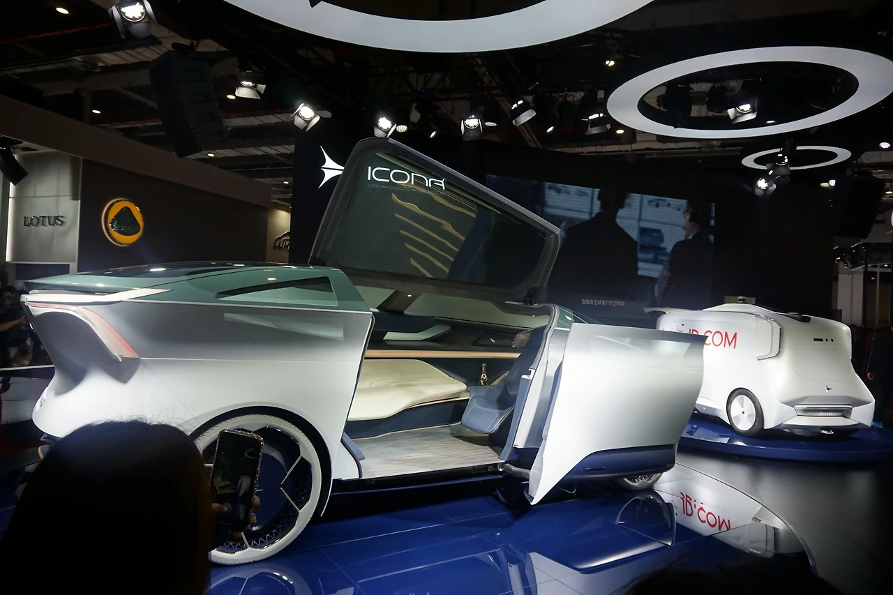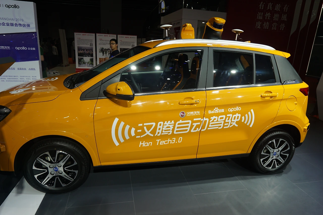 한편 사진 4는 한텅 자동차와 바이두의 제휴를 통해 진행되는 자율주행 프로젝트 자동차다. 두 회사는 모터쇼 현장에서 계약을 맺고, 자율주행 제도 구축과 고속도로 자율주행, 자율 주차 등 기술 공동 연구개발을 약속하였으며, 2021년에 해당 기술을 구현할 차종을 양산키로 협의했다.