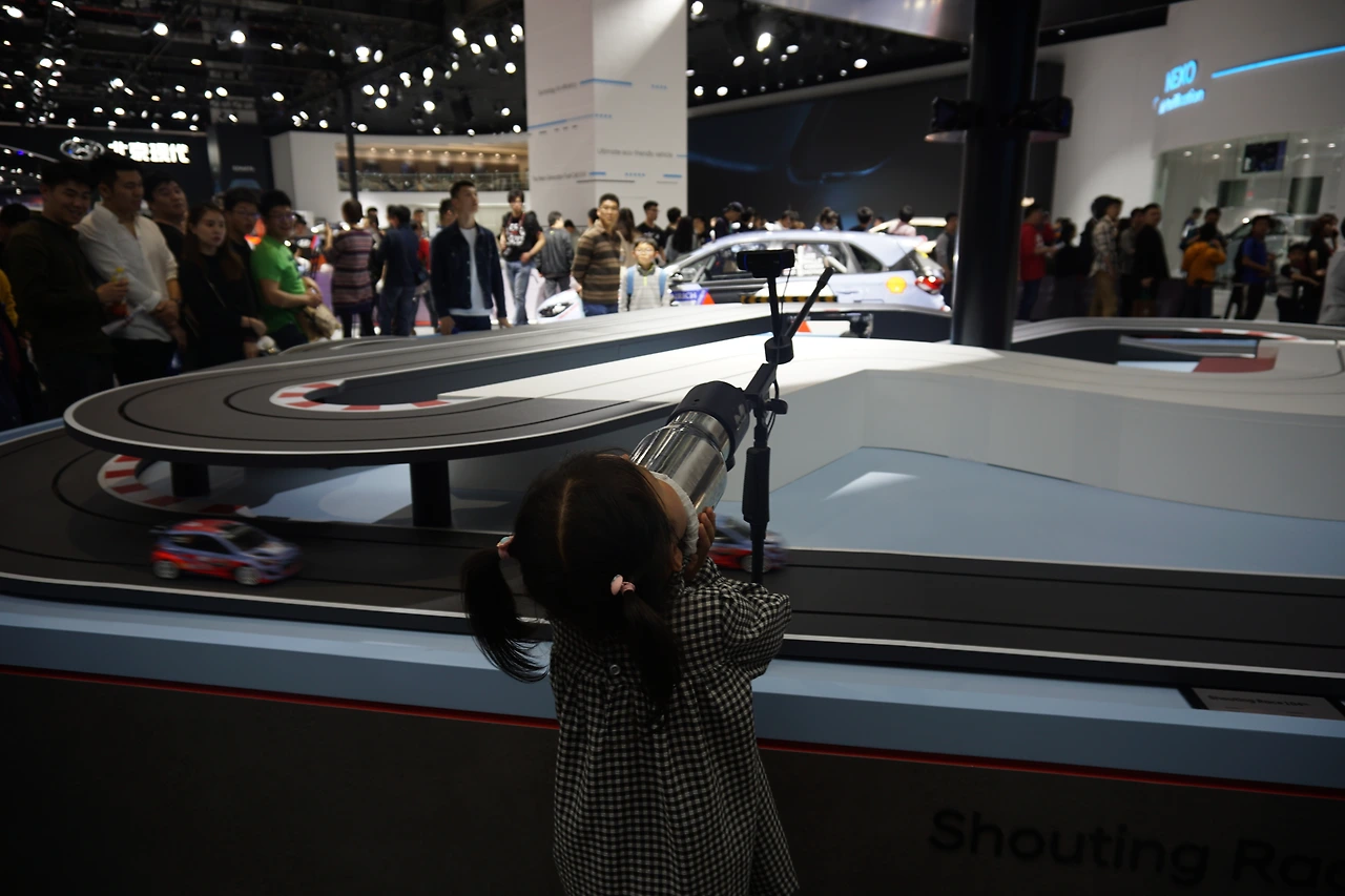 여기는 동난 자동차(东南汽车) 전시장. 마이크에 대고 소리를 질러 데시벨 정도에 따라 미니카를 움직일 수 있고, 그렇게 경주 대결을 하는 게임이었다. 꼬마 숙녀가 열심히 하는 모습이 참 귀여웠다.