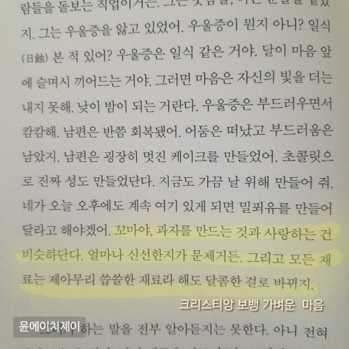 대체로 이 알림을 확인하는 것은 그날의 기분에 따른다 추억 삼아 보거나 무시하거나 그 말인즉슨 오늘도 무시하고 넘길 수 있었다는 뜻이다 그런데 오랜만에 아무 의도 없이 어떤 생각도 없이 오늘은 그냥 알림 창을 눌렀고 1년 전 사진들이 자동재생됐다 그리고 그 사진들 중에는 소름을 유발한 문제의 사진이 포함되어 있었다 그건 바로, [크리스티앙 보뱅, 가벼운 마음]의 어느 페이지 어느 문단 어느 구절을 찍어둔 것이었다