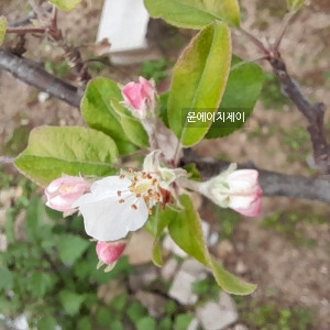집 마당의 사과나무 잎도 빨간 사과색이 되었고요 가을 한낮의 청아한 햇빛을 닮은 꽃도 피웠답니다