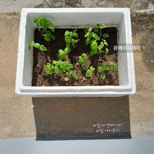 아쉽게도 텃밭에 함께 입주했던 바질은 상황이 좀 다르다 바질이 유독 추위에 약한 건지 텃밭에서 시름시름 앓아 다시 아이스박스 작은 분을 만들어 분갈이를 했는데 바질잎의 색은 돌아왔지만 크기가 영 커지지 않고 성장도 무척 더뎌졌다 낮에는 햇빛에 내어두고 물도 듬뿍 주면서 보살피고 있지만 이제 막바지를 향해가는 바질의 생애에 무조건적인 응원과 기대를 쏟아붓는 것은 멈춰야 할 것 같다 그동안도 멋진 빛깔과 향긋한 내음으로 충분한 기쁨을 주었으므로