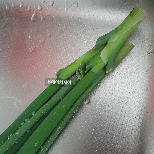 심지도 않은 텃밭에서 저 혼자 자란 부추와 텃밭에서 잘라낸 대파