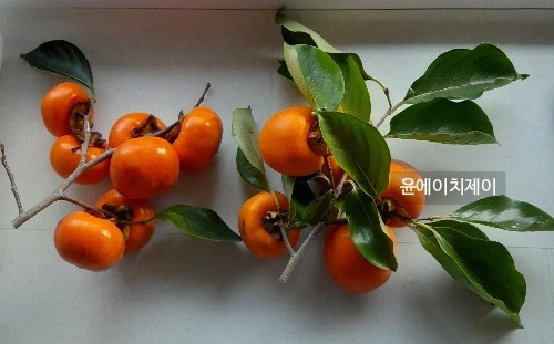 늦가을에 풍성하게 수확한 단감과 대봉시