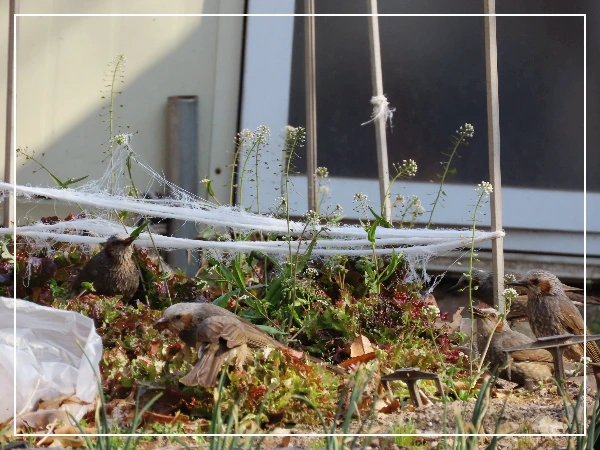 녀석들은 울음으로 서로 무언가 주고받는 듯하더니 밭 옆 나무에서 한 무리가 바닥으로 내려왔다. 그리곤 무엇인가를 쪼아먹기 시작했다. 그렇다!! 저 녀석들이 노린 것은 ‘상추’였다. 텃밭 한쪽에 고이 심겨 여린 잎을 자랑하던 상추. 녀석들은 그 무리 안에서도 조가 정해 진 것 처럼, 1조, 2조 이런 식으로 번갈아 가며 상추밭에 내려앉아 야무지게 상추를 뜯어 먹기 시작했다.