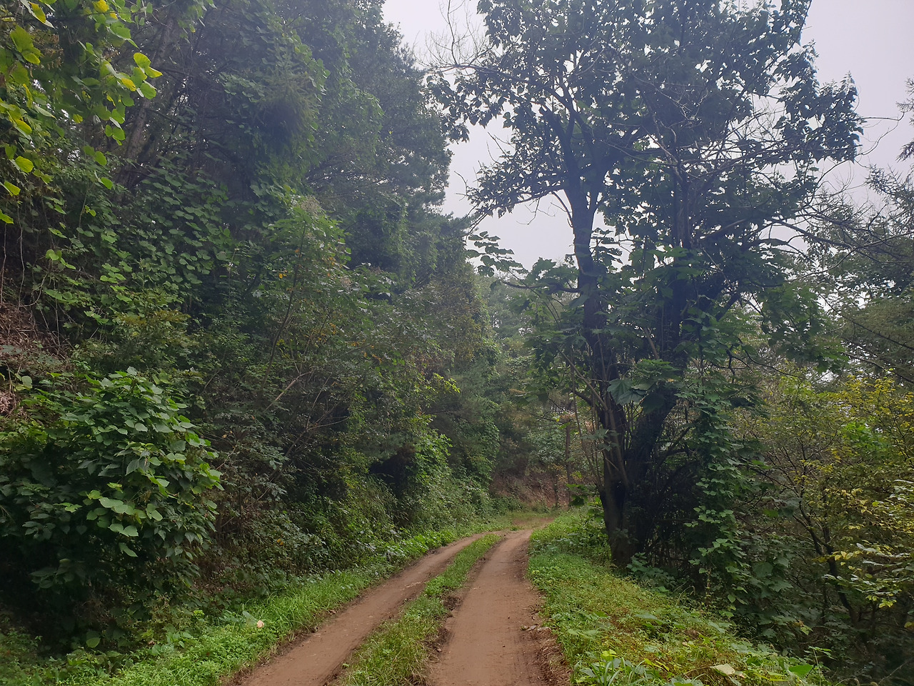 숲길은 산허리를 굽이쳐 올라 능선부에서 다시 다른 골을 따라 깊이 이어진다. 주변 숲은 사람의 손을 타지 않는 자연림이어서 나무들이 제멋대로 웃자라 있고 수령도 많아 보이지 않는다. 그 가운데서도 유독 눈에 많이 띄는 것은 오동나무였다. 사람이 식재를 했는지 모르지만, 수십 년은 족히 되어 보이는 오동나무들이 숲길 곳곳에 사람 얼굴 만 한 이파리를 늘어뜨리고 기괴한 모습으로 서 있다. 그 모습이 마치 이 숲을 지키는 사천왕상같기도 하다.