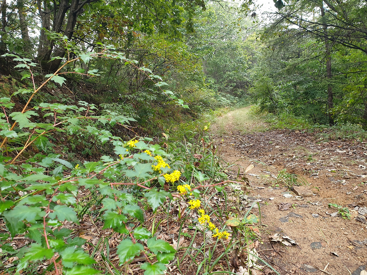 가을에도 야생화는 생명의 마지막 자태를 드러낸다. 갈변하는 냄새가 흩날리는 가운데서도 누린내풀, 구절초, 나도송이풀, 닭의장풀 등이 보라색 하얀색 노란색 파란색으로 자신을 표현하고 있다. 이 숲은 생의 한 시절을 마감하고 있지만, 가을 야생화는 작지만 확실하게 자신을 불사르고 있는지 모른다. 그렇다고 화려한 것도 아니다. 소소하게 작은 무리를 짓고 있을 뿐 사람들의 시선을 사로잡지는 못한다. 숲길 한편에서 수줍음을 머금고 산객을 호객하지만, 관심을 두지 않아 미안하기도 하다.