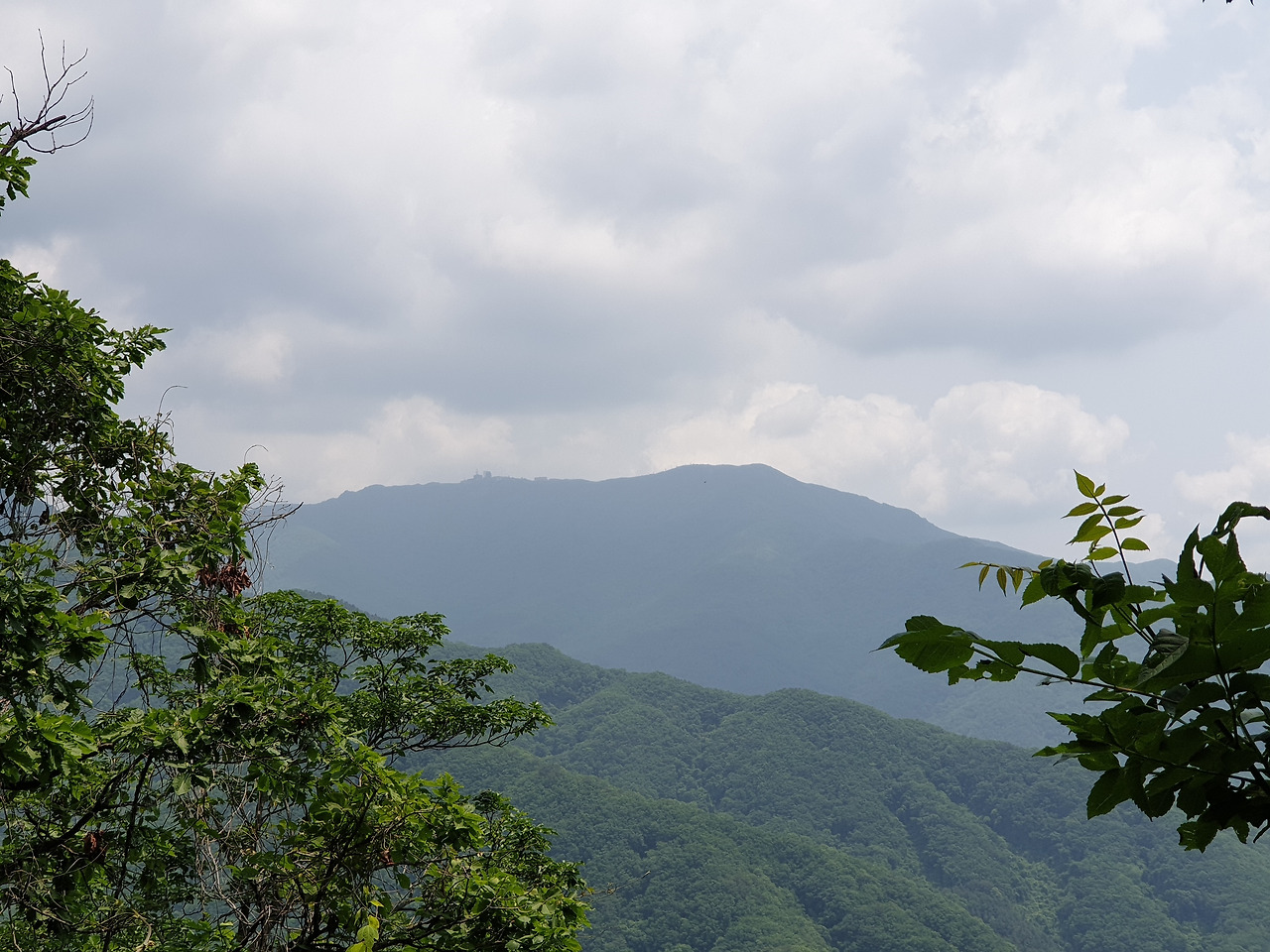 화악산 북봉과 중봉이 보인다그렇게 소리와 침묵과 함께 부대끼며 텅 빈 공간을 걷다가 마지막 지점 경사면에서 가뿐 숨소리를 토해냈다. 드디어 국망봉의 거대한 능선 줄기가 눈앞에 펼쳐지기 시작했다. 바로 저 사나운 산줄기 뒤에 악명 높은 무주채 계곡이 있다. 성난 황소의 불뚝 솟은 핏줄처럼 국망봉 정상에서 뻗어 내려온 산줄기는 나의 시선을 압도하고 있었다. 침묵 뒤에 숨은 악마의 그림자가 아른거렸다. 몇 년 전 겨울 폭설이 온 후 아무 생각 없이 그 무주채 계곡으로 들어갔다가 사투를 벌인 끝에 국망봉에 올랐던 악몽이 바로 앞에서 벌이지고 있었다. 어둠 속에서 눈을 부릅뜬 무주채 계곡은 저 숲 뒤에서 나를 노려보고 있을 것이다.