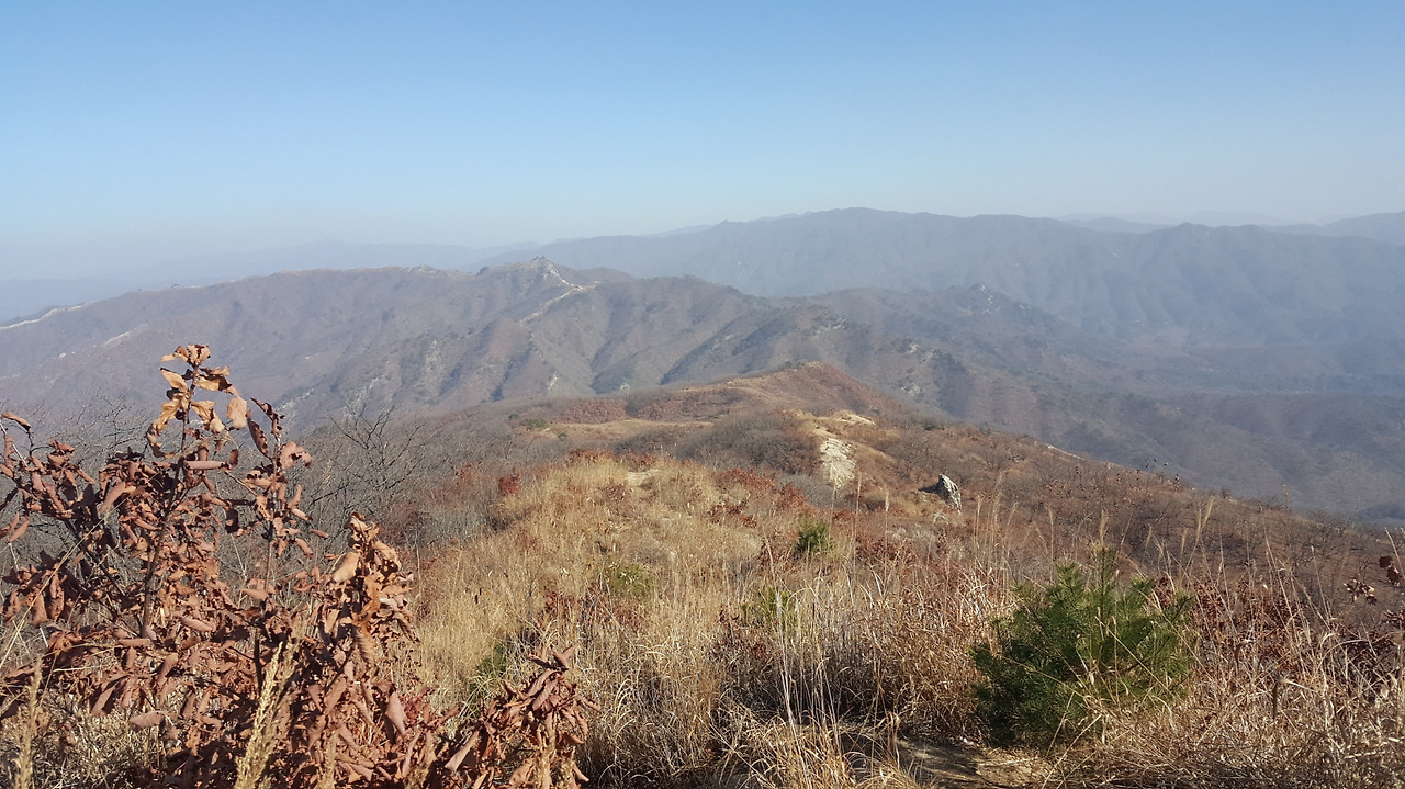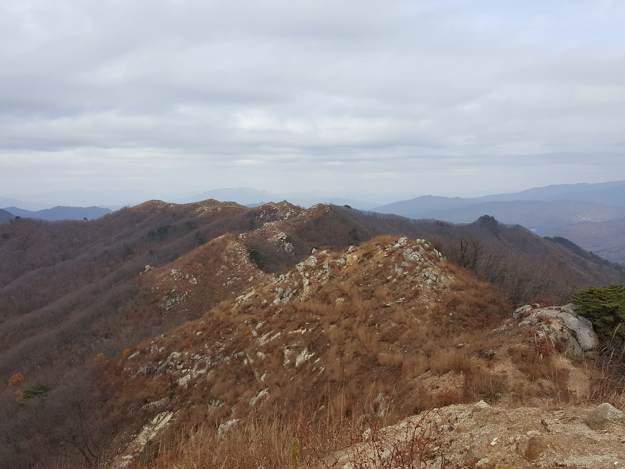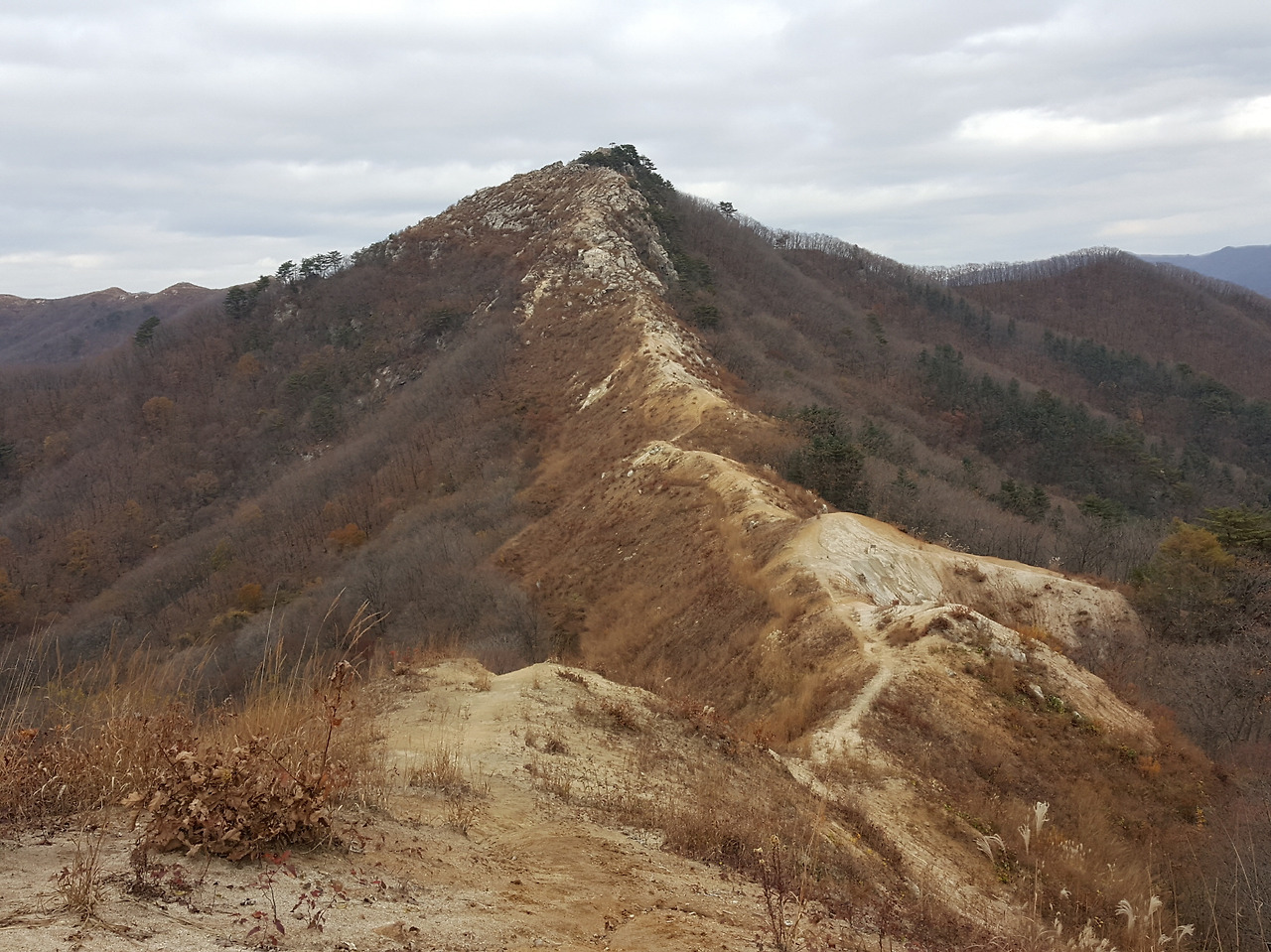 2017년 11월 /약사령그렇게 오르다 보면 약사령 마루금에 당도한다. 포 사격이 있는 날이면 고개를 통제하는 군용 지프차가 주차해 있던 공터에는 그 흔적들이 남아 있었다. 이곳은 각흘산과 명성산을 잇는 고개이며 각.명 종주의 중심이라고 해도 틀리지 않다. 비록 보잘것없는 고개에 불과하지만 산악인들의 애환이 짙게 배어있는 곳이다.