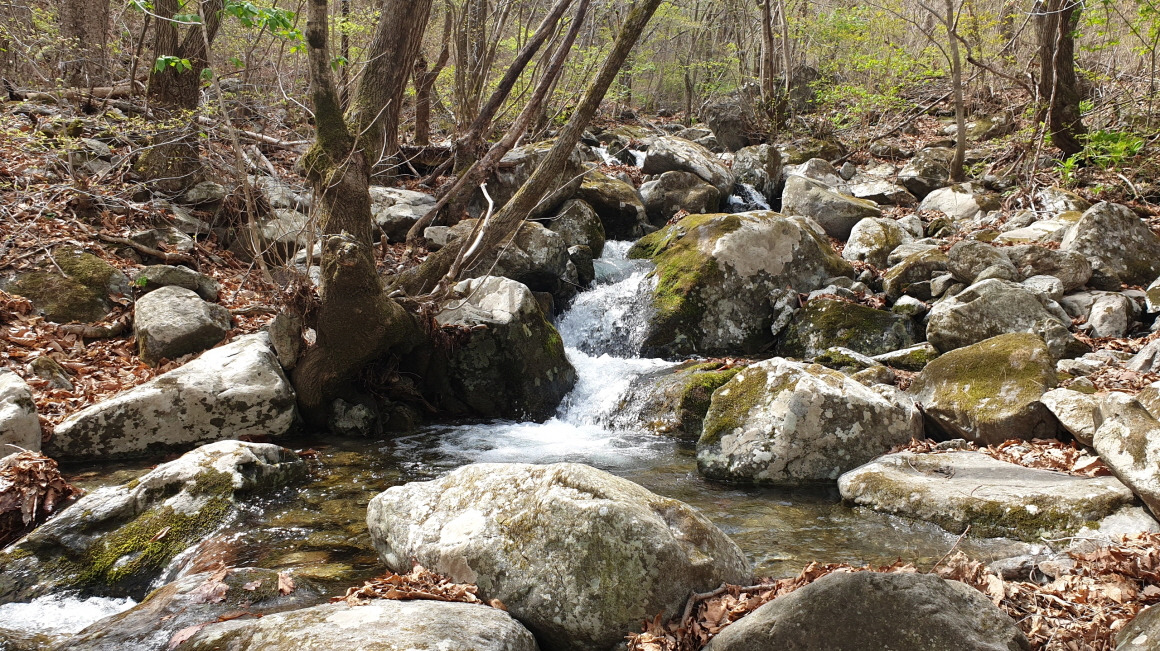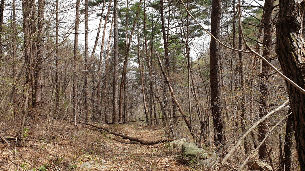 2021년 4월 17일 / 당골 상류그렇게 당골의 봄에 취해 오르다 보면 도솔천은 온 데 간 데 없이 사라지고 욕계에 내동댕이친 나를 발견하게 된다. 이제 좋은 세월은 다 지났다. 만든 지 몇 년 밖에 안 되는 황토색 임도가 산허리를 타고 길게 눈앞에 펼쳐지고 있었다. 그놈은 입을 쫙 벌리고 침을 흘리며 나를 마중한다. 다른 곳으로 탈출할 곳이 없다는 것을 그놈은 잘 알고 있는 듯 유혹 따위는 하지 않는다. 예전 같으면 온갖 교태를 부리며 나를 유혹했겠지만 지금은 자신에게 영혼이 빼앗긴 것을 잘 알기 때문에 그런 짓은 하지 않는다. 마법에 걸긴 것처럼 나는 젓꿀이 흐르는 임도로 발걸음을 옮기기 시작했다.