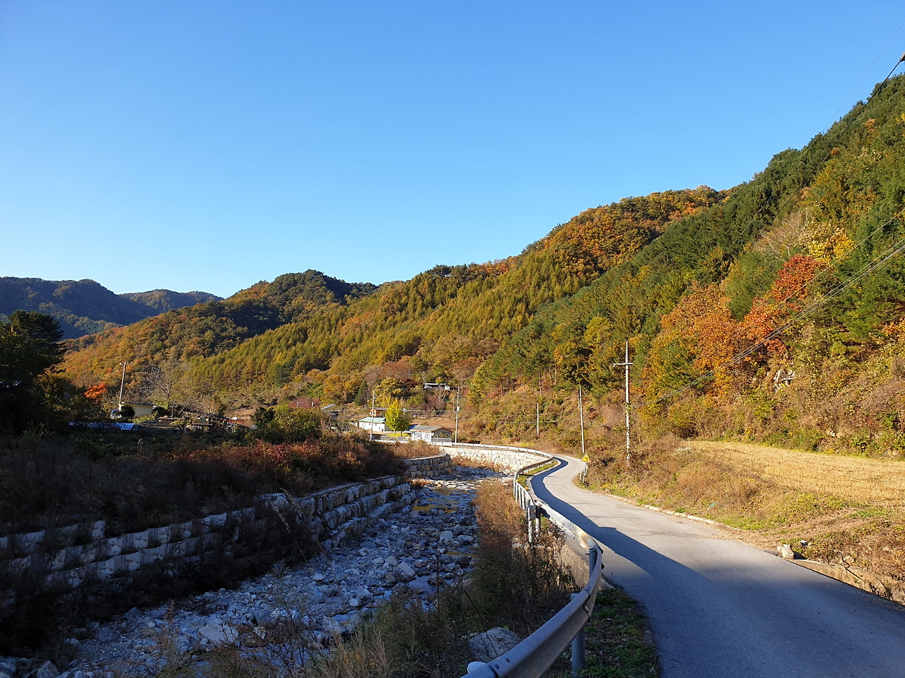 2020년 10월 24일 / 월명리 마을회관으로 가는 길그 마을로 들어가는 길은 오직 하나다. 양구에서 20리 길을 가다가 마지막에 가파른 공수령을 넘어야 월명리로 갈 수 있다. 물론 지금은 2년 전에 터널이 만들어져 한결 수월해졌지만 그래도 눈이 오는 날이면 통제되기 일쑤이다. 옛 고갯길이 아직도 남아 있는데, 협곡 같은 좁은 골을 타고 급경사를 굽이치며 오르는 길은 정말 히말라야 산길을 연상하게 한다. 지금은 터널이 생겨 버스가 다닐 수 있지만 그 전에는 감히 엄두를 내지 못했다. 좁은 공간에서 이루어지는 굴곡진 경사면은 긴장감을 유발하고도 남는다.