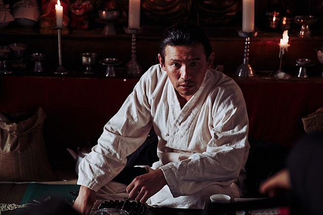그가 굿을 하는 장면이 꽤 길게 연출되는데 강렬하고 자연스런 연기를 보여준다.>