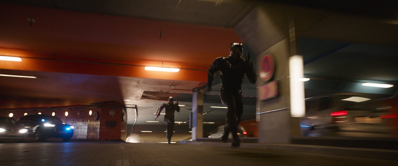 <윈터솔져를 쫓는 블랙팬서를 쫓는 캡틴 아메리카.>