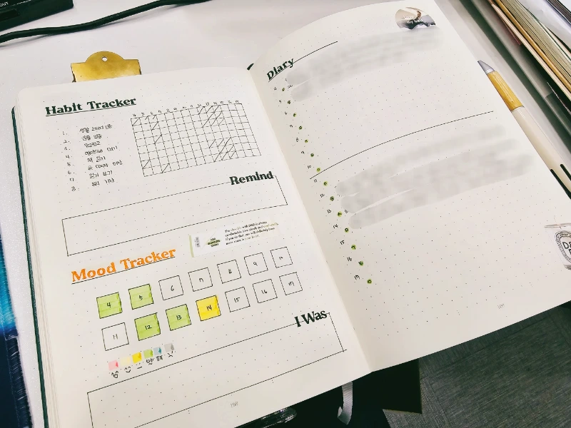 작년 연말에 다이어리를 사며 올해는 끝까지 가득 채운 노트를 두 권은 만들겠다는 각오를 다졌었던 것 같다. (그 각오를 핑계로 사실 노트 한 권을 미리 더 사두었다.)불렛저널 세팅도 제법 깔끔하게 잘 되어서, 다이어리 기록 유튜브를 시작해 볼까 하는 야망을 품기도 했었다. 당장 장비 구매를 알아봤을 정도로 나름 진지했는데, 불행인지 다행인지 그 직후 믿을 수 없을 정도로 많은 일이 몰아닥쳐 다이어리 기록 자체를 제대로 못 하게 되었으므로 유튜버가 되는 일은 없었다.