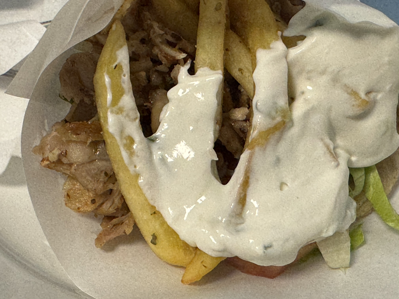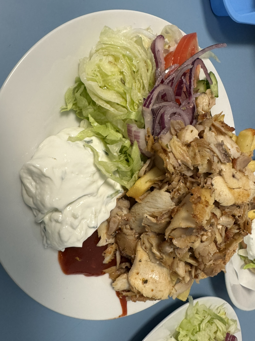 박물관에서 사용한 에너지를 보충하기 위해 식당을 찾는다. 큰 딸이 추천한 수프와 바게트를 곁들인 식당은 사람들이 약간 붐비고 기다려야 할 것 같다. 헝가리 현지 음식을 파는 작은 식당은 손님들로 꽉 차 있었다. 오는 길에 내가 봐뒀던 그리스 식당을 긴급 제안했다. 서커스 관람 일정이 촉박해 빨리 준비되는 케밥을 주문했다. 접시에 담긴 케밥 두 개와 종이에 싼 작은 케밥 하나를 주문했다. 육즙은 살아 있고, 기름은 쫙 빠졌으며, 신선한 채소도 곁들여 있어서 네 식구가 먹기에 넉넉했다. 요구르트 소스의 달지 않은 신맛이 고기의 맛을 감싸주고 아삭한 채소가 씹는 맛의 식감을 더 올려준다.