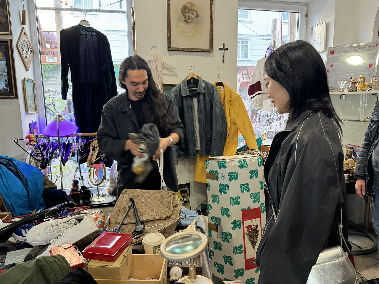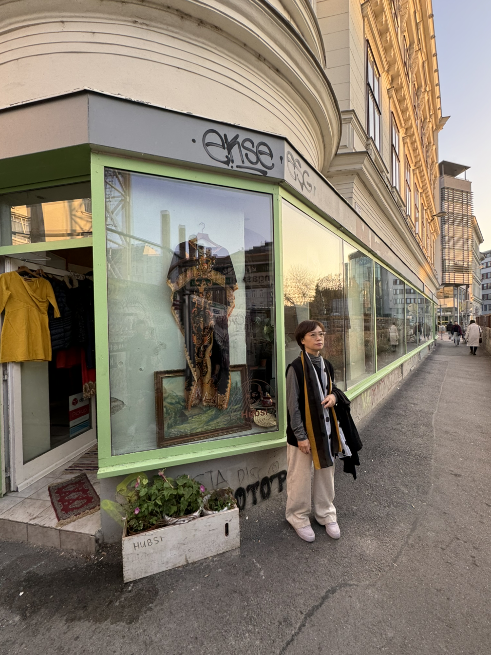비엔나 시장으로 방향을 잡았다. 전철길과 차도와 인도를 사이에 두고 양쪽으로 상가와 주택가가 잘 정렬되어 있는 길을 지난다. 예술의 도시를 상징하는 벽의 낙서 혹은 작품들이 중심가로 이동하면 할수록 더 많이 보인다. 빈티지 샵은 아닌 거 같고 그렇다고 그냥 중고상품 전시점이라고 하기에는 오래된 것들이 있는 잡화점에 들렀다. 구제는 <실용적 중고>, 빈티지는 <이야기를 가진 오래된 물건>이라고 하면, 이 가게는 약간의 빈티지와 대부분의 구제로 구성되어 있다. 큰 딸은 평소 구제 매장에서 싸게 산 옷들을 잘입는다. 고르는 안목도 점점 높아졌다. 하지만, 새 것을 좋아하는 나는 왠지 꺼림칙하게 생각했었다. 그런데 오늘 그 생각이 바뀌게 되었다.