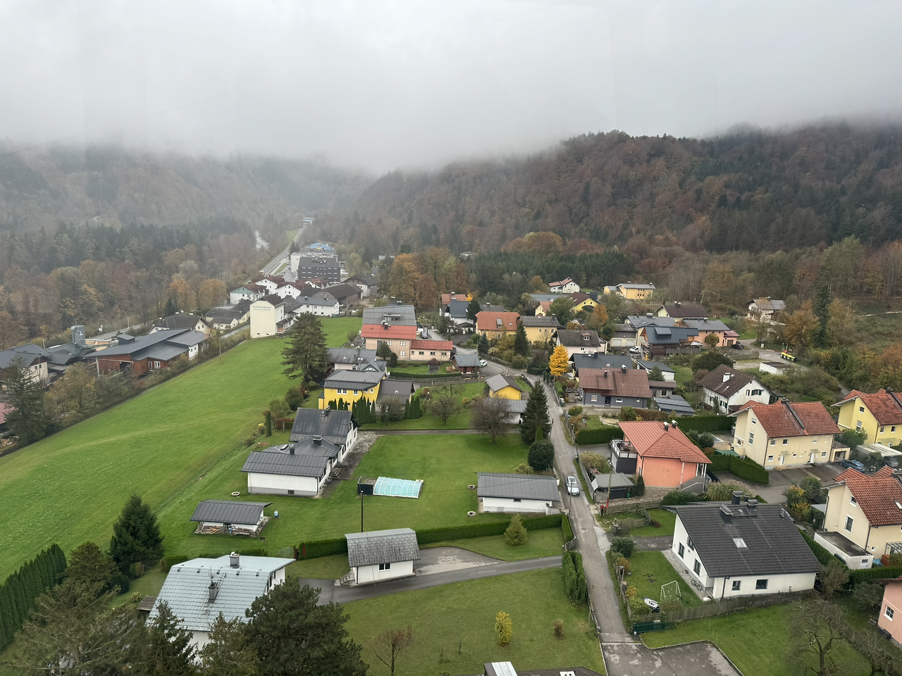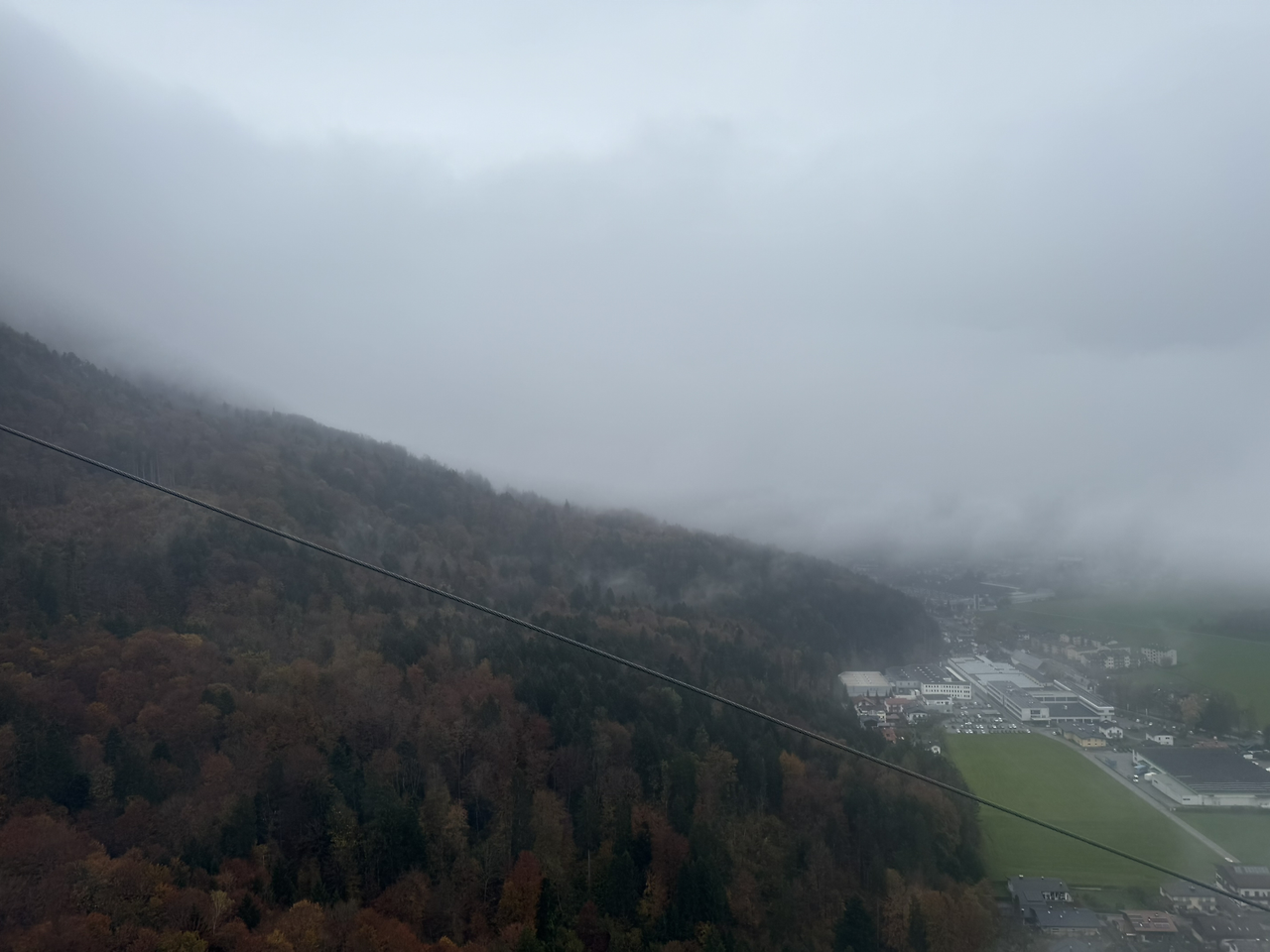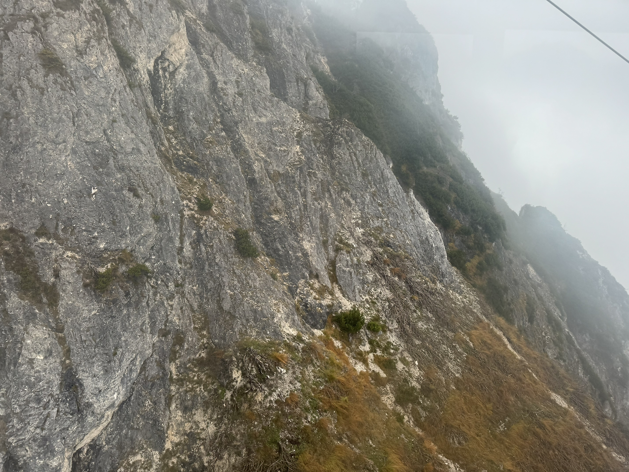 독일과 오스트리아 국경에 위치한 운터스베르크는 1900미터다. 전망대행 케이블카는 1961년부터 운행을 시작했다. 날씨가 흐리고 안개가 자욱해서인지는 몰라도 기다리는 사람이 없었다. 우리 식구들만 달랑 태우고 케이블카가 출발한다. 1300미터를 올라가는 케이블카는 속도가 빨랐다. 안개가 끼어서 높이 공포는 덜하다. 스위스 리기산을 케이블카로 올라간 경험 덕분에 덜 공포스럽다. 유사한 경험은 편도체의 민감함을 떨어뜨려 공포의 강도를 누그러뜨린다.