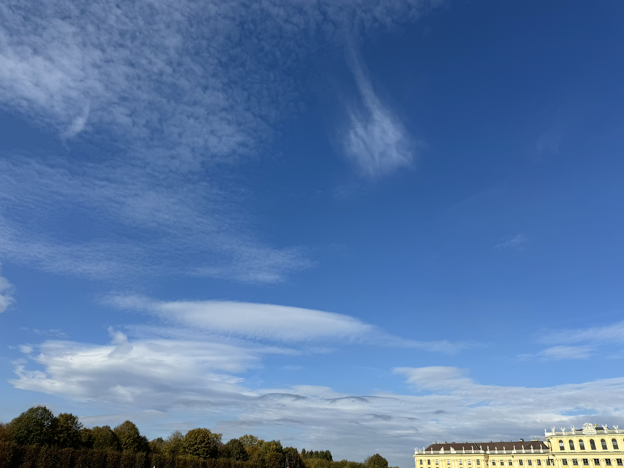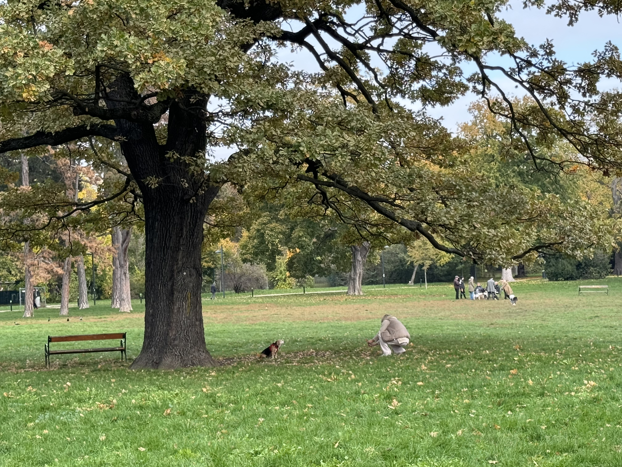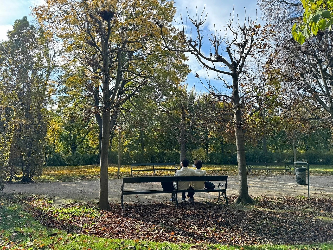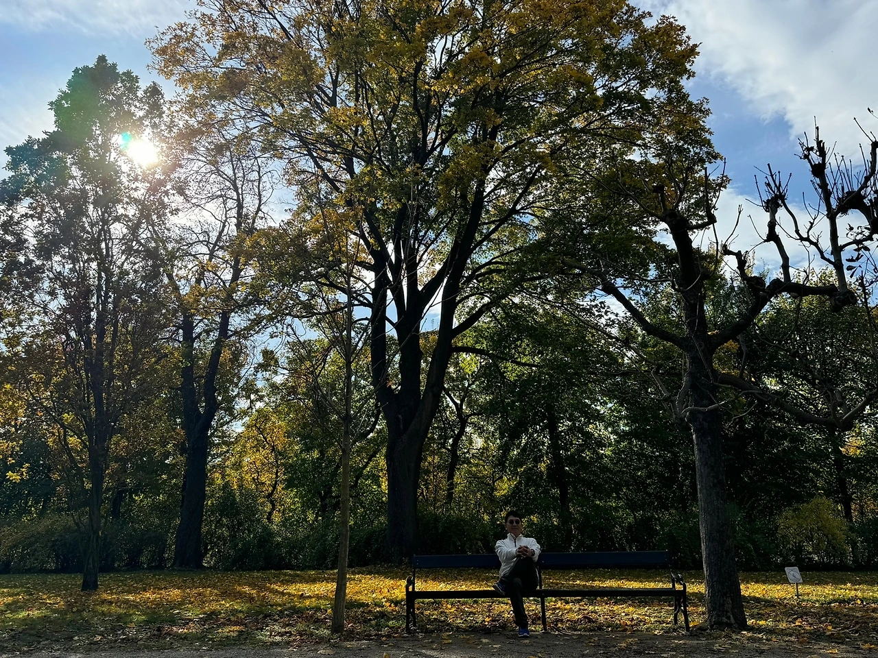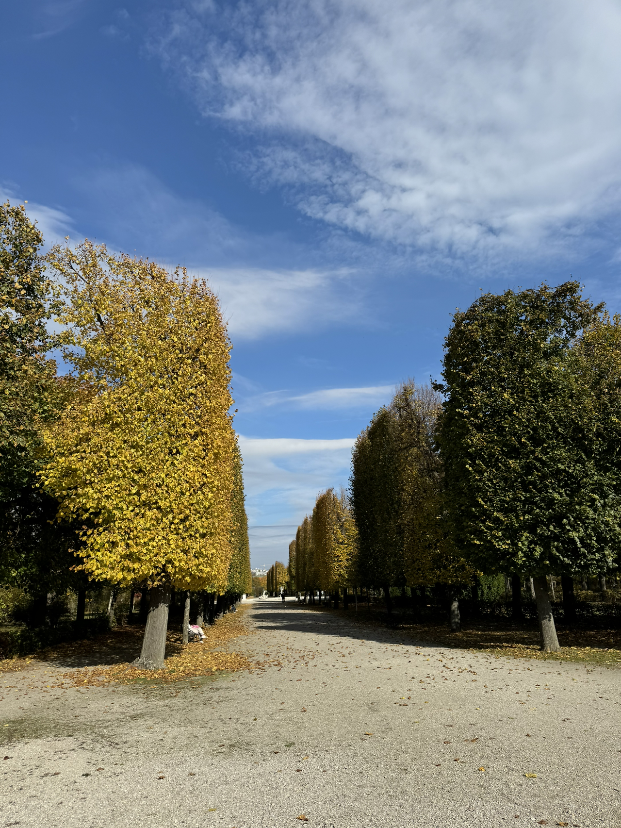 쉔부른 궁전을 곧바로 가지 않고 옆의 공원을 지나서 간다. 덩치 큰 나무들과 잔디밭, 반려동물들과 한 때를 즐기는 사람들을 보면서 잠시 멍 때리는 것만으로도 즐겁다. 흐릿했던 날씨가 점점 맑아지고 구름이 높이 올라가면서 사물의 풍경이 또렷이 보이기 시작할 무렵 궁전에 도착했다.