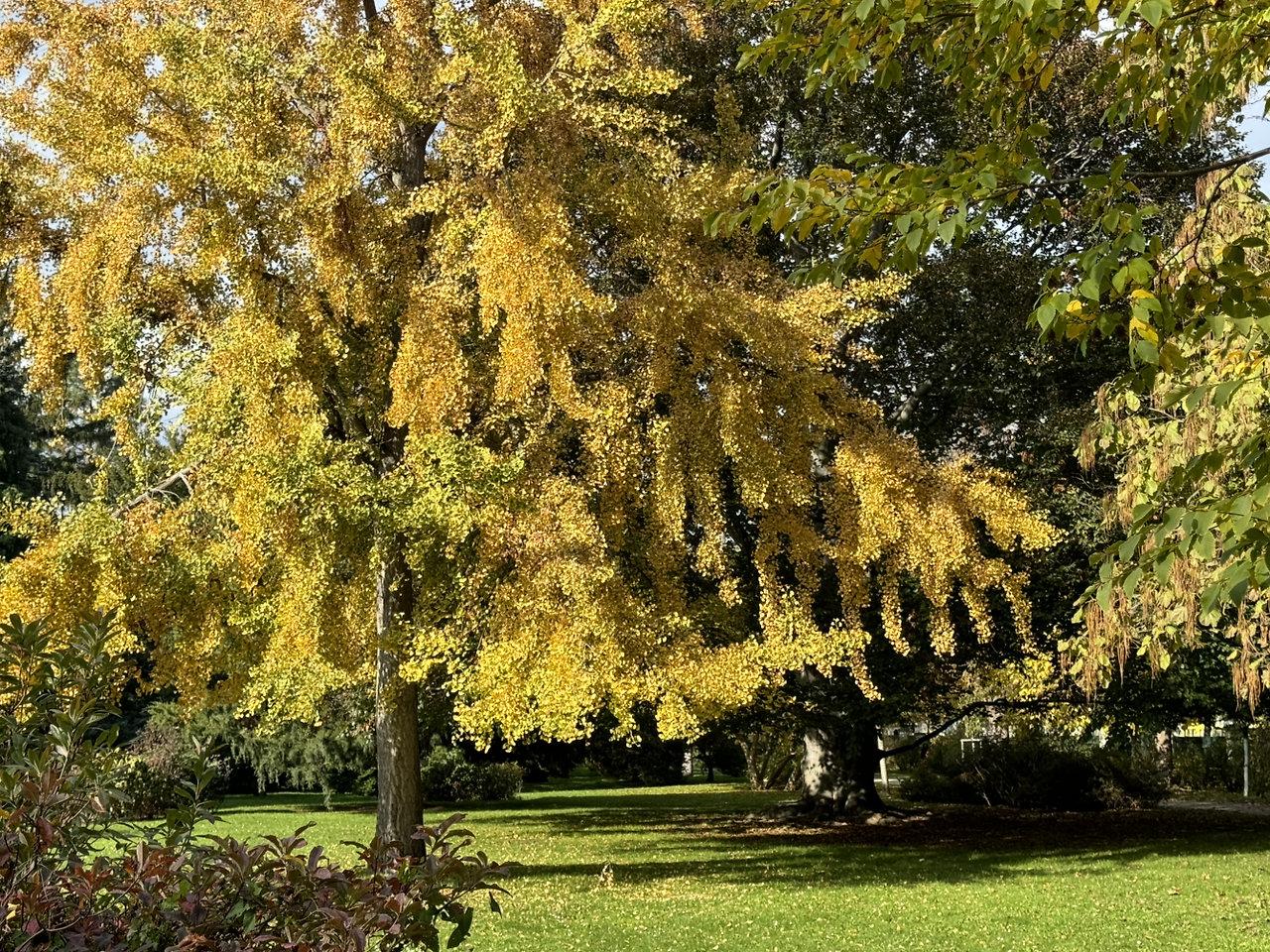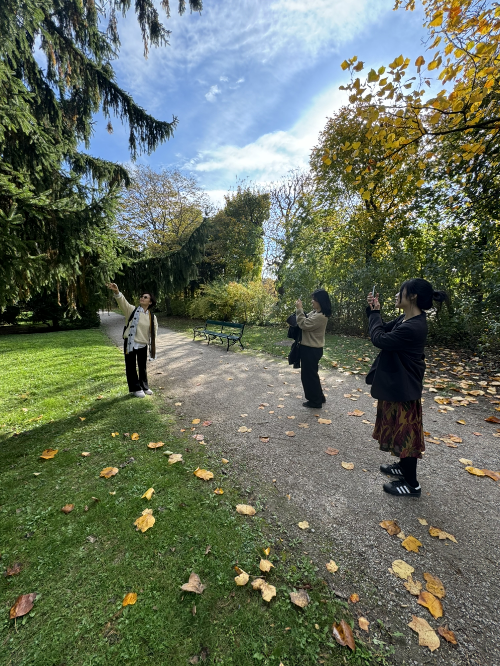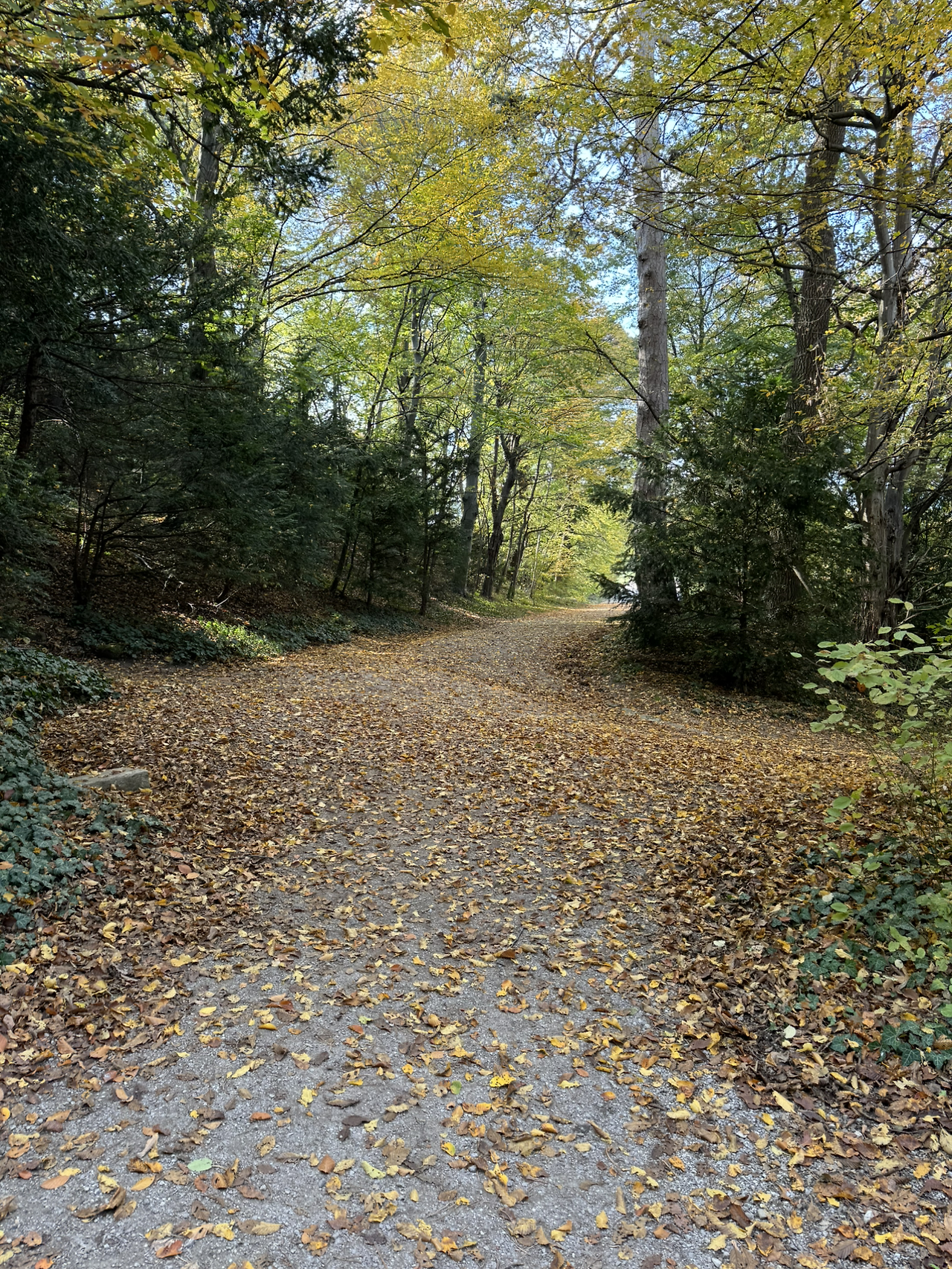 낙엽을 밟는 길인데, 앙상한 나뭇가지들만 있는 게 아니라 푸르고 무성한 나무들과 푸른 잔디밭에 떨어진 낙엽들을 보듬고 있는 듯해서 쓸쓸하지 않다. 2019년 겨울에는 넓기는 했으나, 약간 황량한 느낌이었는데, 지금 이곳은 바로 한 계절 전의 화려한 풍경들을 곳곳에 수놓아 눈이 호강한다. 새싹이 움트는 봄이나 화려한 꽃들로 장식된 여름은 얼마나 더 멋질지 상상해 본다.