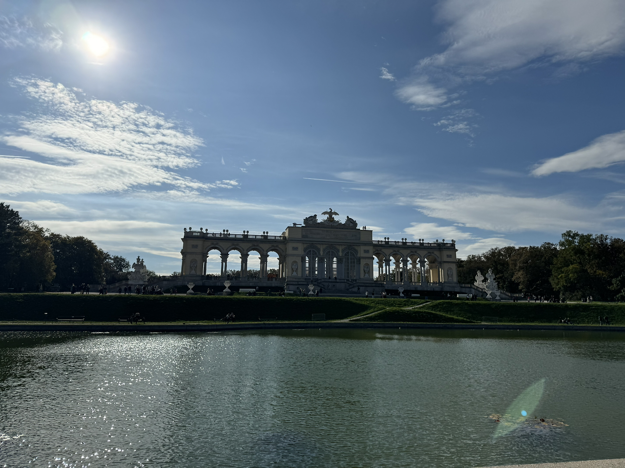 본래 이 지역은 16세기에 황실 소유의 사냥터였으며, “Schönbrunn(아름다운 샘)”이라는 이름은 전설에 따르면 황제 마티아스가 이곳에서 맑은 샘을 발견한 데서 유래했다고 전해진다. 현재의 궁전은 레오폴트 1세 황제가 17세기말에 여름 궁전으로 짓기 시작했으며, 마리아 테레지아 여제(재위 1740~1780)가 바로크 양식으로 대대적으로 확장하여 오늘날의 모습에 가까워졌다고 한다. 전형적인 오스트리아식 바로크 궁전 건축으로, 외관은 화려하면서도 균형감 있고, 내부는 로코코적 장식미가 두드러진다.