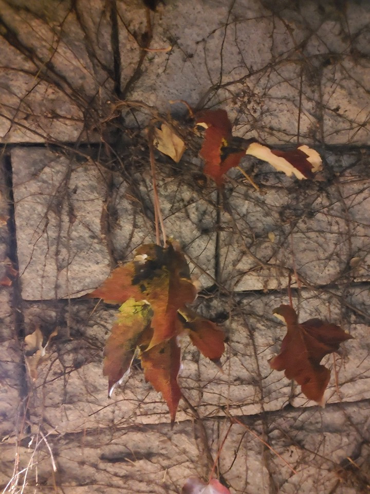 어느덧 밤 10시를 넘어서고 평화시장을 지나고 있다. 벽에 붙은 잎들이 하나둘씩 줄기들과 이별을 준비하는 모양을 보며 가을의 끝자락에 와있음을 새삼 실감한다. 길은 잠시 멈춰서 있어서 깜짝 놀라다가 왼쪽으로 커다란 돌 징검다리가 있다. 돌을 하나씩 밟으며 돌 틈 사이로 흐르는 물을 쳐다본다. 지나온 시간과 지금의 시간이 저기 흐르는 물과 같은 흐름이라고 감정이입을 잠시 해보았다. 지금 그 물의 흐름을 지켜보는 지금 이 순간이 그 물에게도 지금 이 순간이다. 우리는 그렇게 순간을 잠시 마주치고 흘깃 쳐다보고는 각자의 갈 길을 간다.