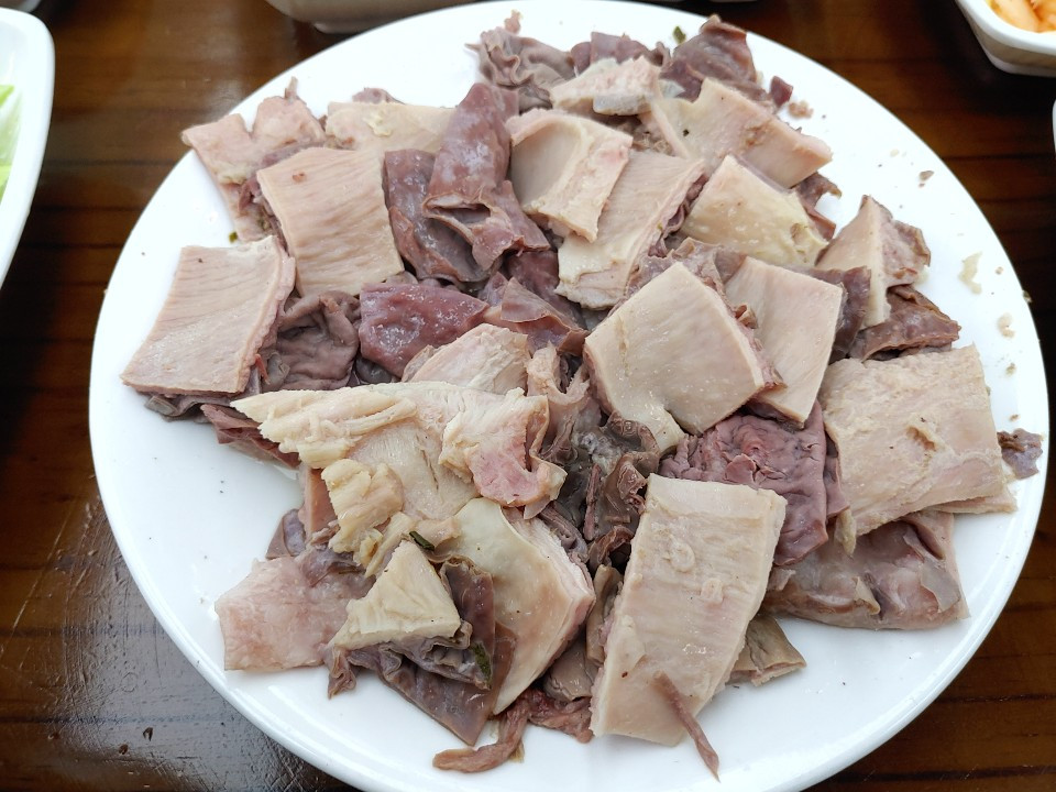 뭍에는 내장수육이 나의 젓가락을 기다리고 있다. 음식에 대해 비교하는 사람들에게 감히 말하고 싶다. 어쩌자고 음식을 비교하는지 그리고 그 비교하는 맛의 절대적인 기준이 각각의 사람들이 가지고 있는 미각 수용체의 개별적 특수성을 납득할 수 있게 해주는 것인지 말이다. 내장수육은 어디에서도 볼 수 없는 맛을 선사한다. 한없이 부드러운 그 내장수육은 몸안으로 깊이 퍼지며 나의 내장을 감싸 안는다. 나의 생명은 저 푸른 초원에서 자란 소의 내장을 통해 유지된다. 미안하고 감사한 마음을 보낸다. 내장수육은 깊이 있는 질감을 선사한다. 그리고 진한 여운을 남긴다. 하루나 이틀 뒤에도 사라지지 않고 계속 생각나게 하는 그런 맛임을 익히 알고 있었지만 역시 아는 것과 맛을 보는 것은 차원이 다르다. 이 맛은 나의 뇌를 자극하는 맛이다. 뇌는 끊임없이 그 내장수육의 맛을 되새김질한다.