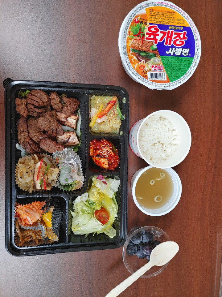 12시 20분부터 회의에 들어가야 한다. 회의 전 도시락이 지급된다고 한다. 아무 생각 없이 육개장 사발면을 준비했다. 최근 코로나 확진자가 늘어나면서 그로 인해 도시락을 먹어야 하는 상황에서도 가급적 주변 식당에 가서 대각선으로 앉거나 밥 먹을 때 외에는 마스크를 쓰고 대화도 거의 하지 않았었다. 맛있는 도시락을 만나기는 쉽지 않고, 더구나 그 많은 포장용기들을 생각하면 답답한 생각마저 들 정도다. 이 차고 넘치는 용기들은 도대체 어디로 가는 것일까. 그럼에도 오늘은 도시락을 먹어야 한다.
