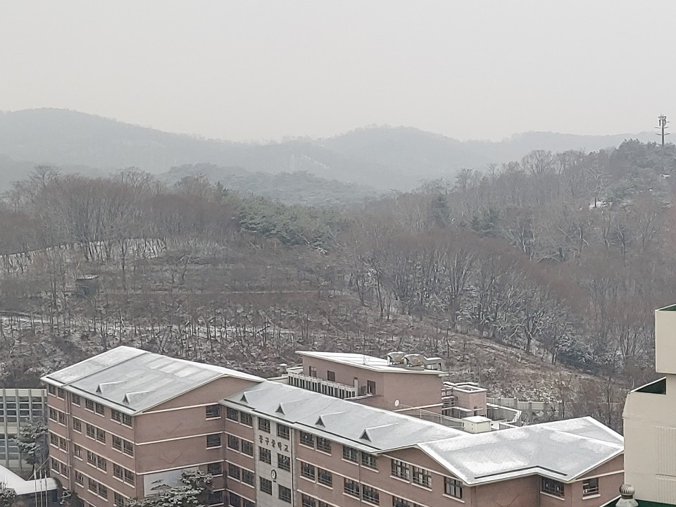 오래간만에 눈이 내렸다. 잠시 흩날리는 눈이라 아쉽다. 흩어지는 눈발이 꼭 지금의 코로나 시국을 말해주는 것처럼 한없이 흔들려서 그다지 즐겁지 않다. 코로나 확진자가 1천 명을 넘어섰다는 우울한 뉴스가 첫눈의 설렘을 덮어버리고 말았다. 오전에는 몸이 완전히 풀어지지 않아 계단을 오르기가 쉽지 않지만 문을 나선다. 엊그제 주치의 선생님 만나 뵈었는데 계단 오르기를 너무 무리하지 말라고 하신다. 무릎에 무리가 간다고 하셨다. 물론 말씀을 해주셔도 내 몸 관리는 결국 내가 하는 것이기에 약간은 신경이 쓰인다. 기온이 많이 내려가서 계단 창문을 열 엄두를 내지 못한다. 세 세트를 마치고 나니 땀이 나기 시작한다. 다섯 세트를 마치고 귀가한다.