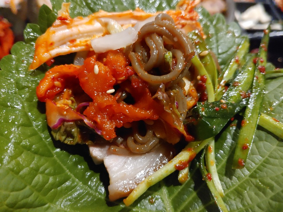 족발은 어떤 식재료를 바탕으로 삶느냐에 따라 그 맛이 결정된다. 너무 진한 향기는 거부감을 불러일으키고 너무 옅으면 돼지고기 특유의 냄새가 날 수 있기 때문에 그 냄새는 없애면서도 식감을 자극할 수 있는 은은한 향이 나야 한다고 생각한다. 이곳의 족발은 은은한 향으로 우선 후각을 자극한다. 비계와 살의 비율이 적당한 한 점을 고른다. 상추나 깻잎 혹은 배춧잎 위에 그 한 점을 올린다. 새우젓은 돼지고기 소화에 도움이 되는 음식이다. 거기에 무말랭이와 배추 겉절이와 부추무침을 약간 얹고 마늘과 비빔막국수를 약간 얹어놓으면 먹을 준비가 된다.