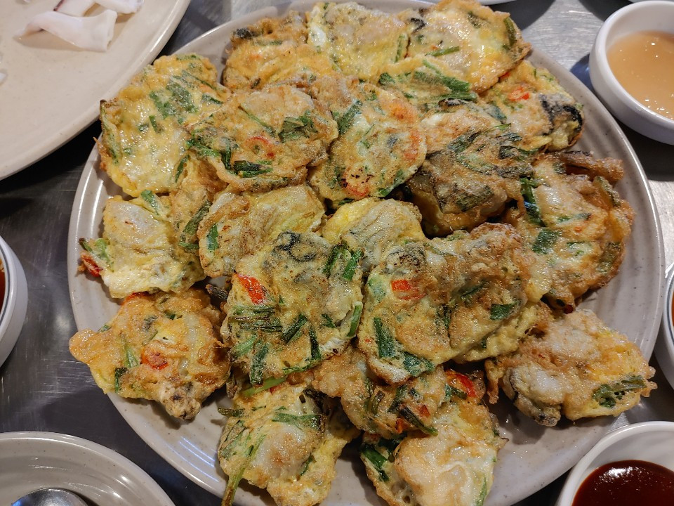 겨울을 빛나게 하는 음식으로 굴만한 식재료는 없을 것이다. 그 촉촉한 생굴에 살짝 얹은 밀가루는 굴의 바다 맛을 꼭꼭 싸안고 있다가 입안에서 씹으면 한꺼번에 맛보게 한다. 곧바로 다시 막걸리 한잔을 부르게 된다. 만약 이 따뜻한 분들과의 밀린 대화가 없다면 순식간에 취할 것이다. 굳이 세세하게 설명하고 말을 하지 않아도 눈빛만으로 생략하며 떨어져 나가는 것들을 포함한다면 2시간의 대화는 12시간으로 불어날 것이다. 그만큼 이해와 신뢰를 바탕으로 한 대화는 압축적이며 엔돌핀을 돌게 하고 마침내는 마음속으로 춤추게 한다. 그 뿐인가 배려의 호르몬인 옥시토신과 또 다른 기분좋게 해주는 세로토닌이 분비되는 것을 상상한다