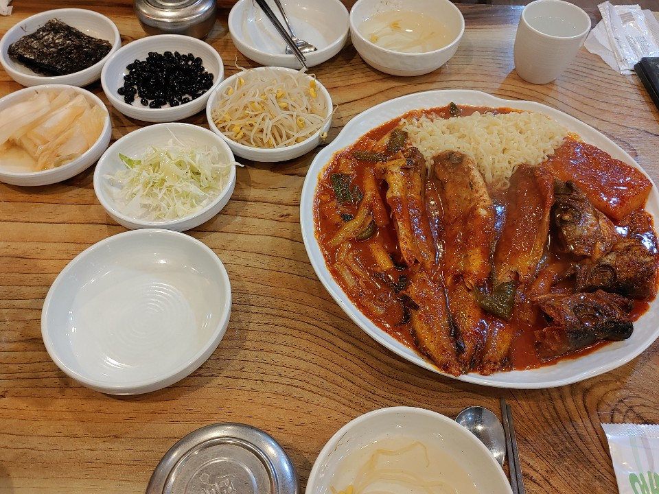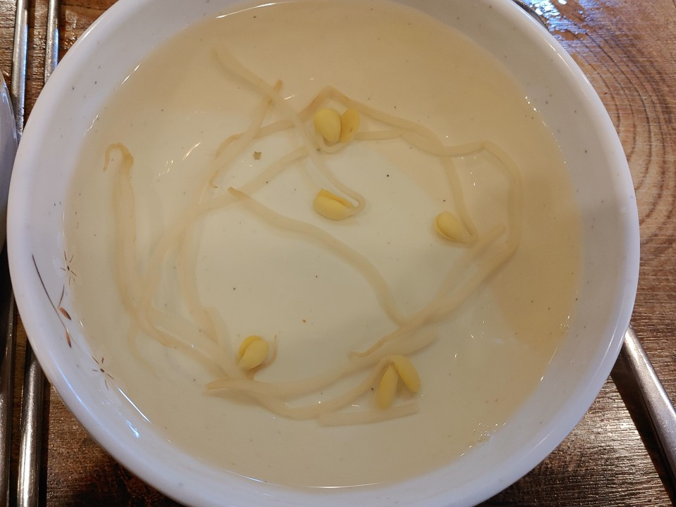불암산 가는 길에는 다양한 음식점들이 늘어서 있다. 명태조림을 제안하길래 워낙 좋아하는 음식이라 오케이를 연발했다. 그리고 지나치게 맵거나 간이 세지 않냐고 물어보니 전혀 아니라고 해서 안심한다. 몸에 쌓인 여러 가지 독성을 풀고 술독을 푸는 효과가 있는 음식이라는 글들을 보고 있는 사이 먼저 콩나물국이 등장했다. 명태 머리와 같이 삶고 전혀 간을 하지 않아 콩나물의 시원함과 명태의 머리에 담긴 맑은 진액을 먹는 느낌이다.