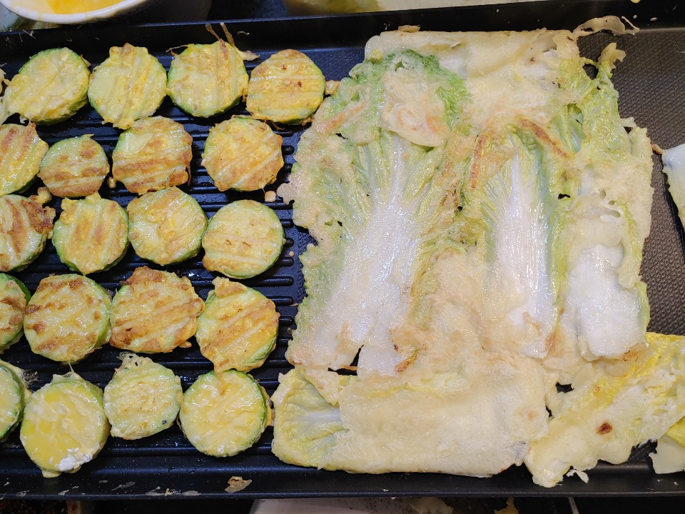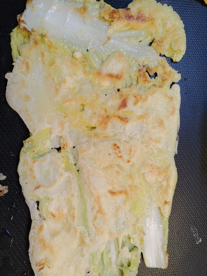 배춧잎은 수분을 적당히 머금고 있어서 힘차게 위로 뻗어있다. 줄기는 단단하고 잎도 싱싱했다. 그래서 전을 부치는데 어려움이 있었다. 차츰 요령을 알게 되면서 배추를 밀가루 반죽에 적시니 한결 부드러워졌다. 그래서 나중에는 배춧잎들을 밀가루 반죽통에 모두 밀어 넣고 하나씩 꺼내서 프라이팬에 올렸다. 기름을 적당히 두르지 않으니 텁텁하다. 너무 많이 사용해도 기름져서 좋지 않지만 적당량을 어느 시점에 투입할지를 저울질하면서 배추전을 부치는데 점점 그 재미에 빠져들었다.