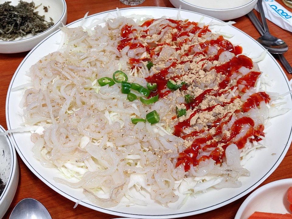 절친이 내민 '막회'라는 히든카드를 받아 들고는 뛸 듯이 기뻤다. 사람들 각자가 가진 음식 자산목록은 그 사람이 살아온 궤적의 일부이기도 하다. 음식 자산을 공유하며 공감대는 깊어가고 나의 자산목록도 튼실해져 간다. 가게를 들어선 순간 그 허름한 아늑함에 편히 기대었다. 콩가루와 초장, 양배추와 어울린 막회는 부드럽고 고소하고 맛있었다. 적당히 데친 문어와 골뱅이는 부드러웠다. 제대로 음식을 하는 곳에 오면 사실 별다른 표현을 할 필요를 느끼지 못한다. 즐겁게 먹어주면 그만이다. 절친과 간만에 만난 후배님들과의 처음 만난 어색함을 지워주는 단골 메뉴는 다양한 구성에 비해 저렴한 가격으로 우리를 환영해주었다. 그 메뉴에 곁들인 술 한잔에 봄밤이 깊어가고 있다.