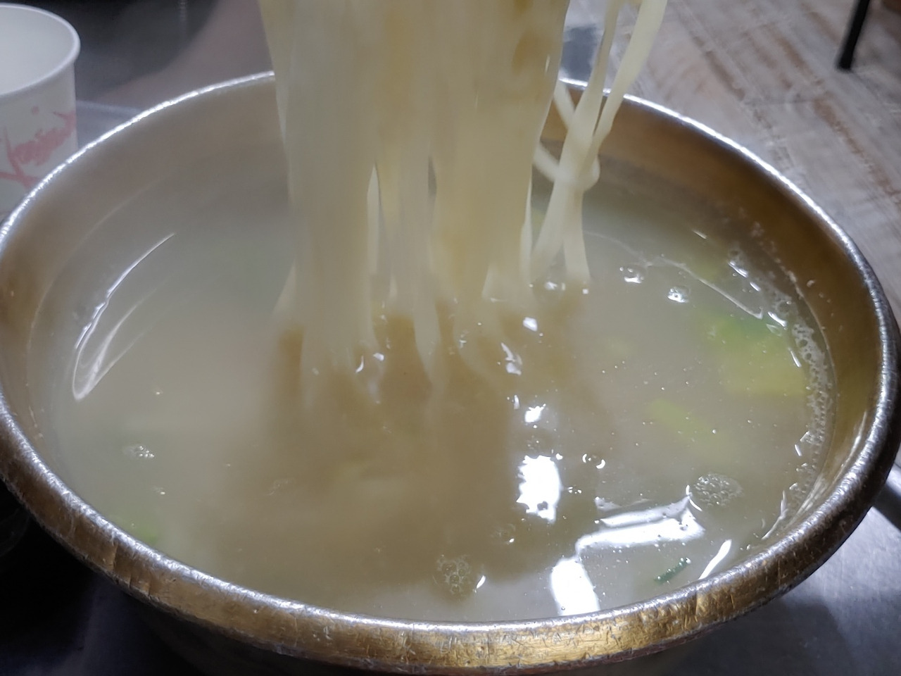 뒷통 살은 최근 이 가게에서 처음 알게되었다. 삼겹살보다 기름이 적고 목살의 퍽퍽한 맛을 넘어서는 적당한 기름기에 살도 쫀득해서 손이 자꾸 가게 된다. 위드 코로나를 앞둔 주말이라 좌석이 꽉 찼다. 갑자기 2년 전으로 돌아간듯한 착각이 든다. 그래서일까? 늘 처음에 반찬으로 주시던 소고기 뭇국이 동이 나고 말았단다. 얼큰 칼국수도 주문 뒤 30분은 소요된다고 했다. 장사가 잘되는 집에서 북적거리는 것이 성가시지 않고 반갑게 느껴지는 것도 코로나의 영향이리라.