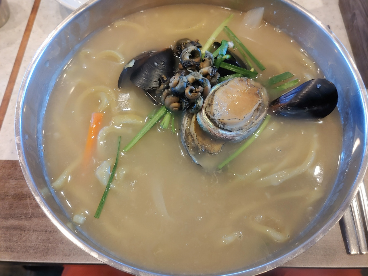 녹차를 섞은 면은 건강한 맛을 선사할 것만 같다. 보말의 강렬한 존재감 그리고 보말을 호위하고 있는 전복과 홍합도 잘 어우러진다. 호박과 당근 그리고 부추 등은 적당히 섞여 색감과 장식적인 느낌마저 준다. 전날 진하게 한잔 한 탓일까. 국물은 내장을 포근하고 아늑하게 감싸준다. 면보다는 국물에 더 가까이 밀착한다. 감질맛과 시원함 그리고 따뜻하게 감싸는 기운 속에서 내 몸은 힐링하고 있다. 먹는다는 것은 단순히 끼니를 때우는 이상의 의미를 갖고 있으리라. 만드는 사람의 정성과 교감하기도 하고 같이 음식을 먹는 사람들과 공감대를 만들기도 하고. 그러고 보니 음식은 하나의 또 다른 소통수단이기도 하다.