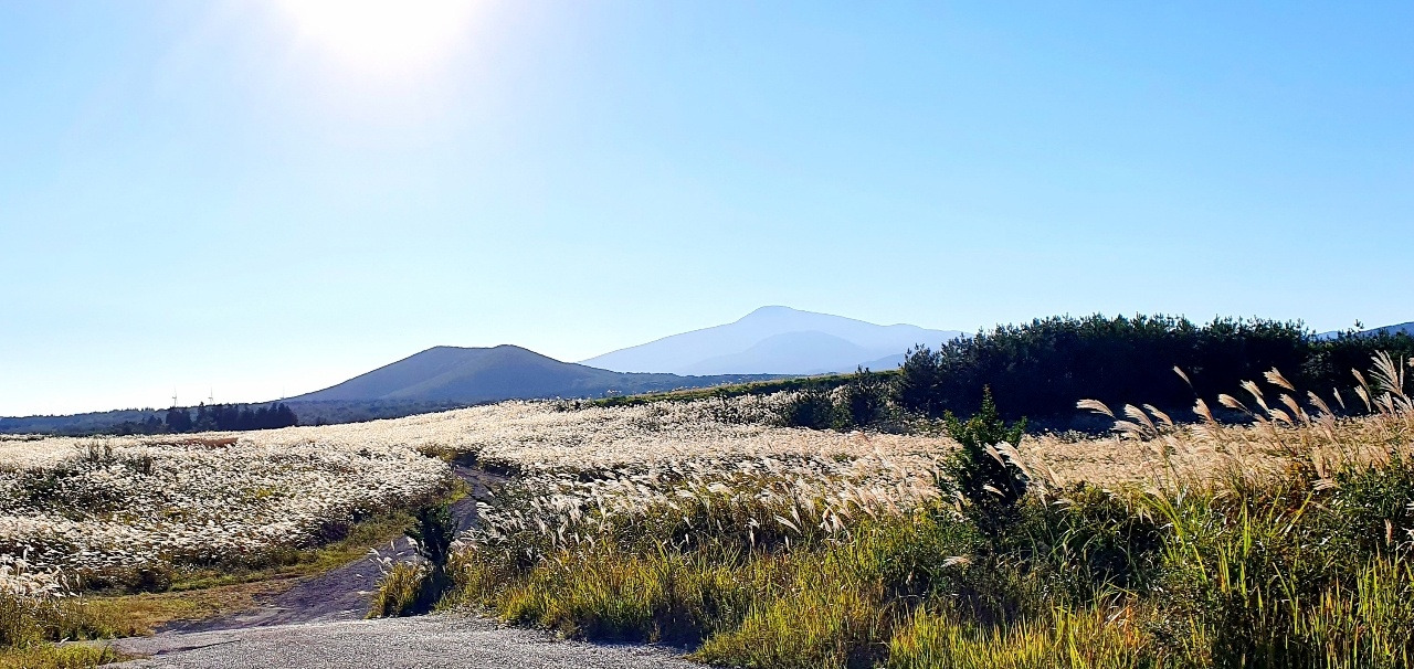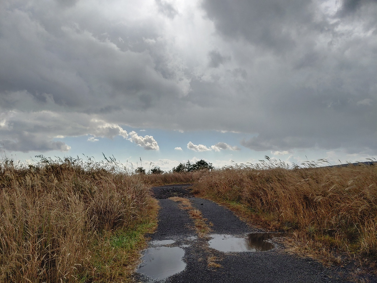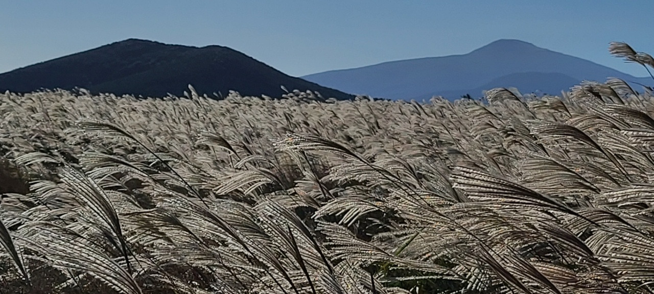 제주 중산간 길은 사람의 마음을 매혹시키는 곳이다. 갈 때마다 언제나 조용하게 산책하며 마음의 위로를 얻는 곳이다. 나무와 풀들도 뭍에서는 좀처럼 느끼기 어려운 풍경을 만들어낸다. 억새밭 한가운데에 있는데 같이 온 일행의 존재를 잠시 잊어도 좋을 만큼 잠깐 동안이지만 깊은 명상에 도달하게 한다. 볼에 와닿는 바람과 나무를 스치는 소리와 햇빛과 구름들이 만들어낸 풍광 속에서 나는 잠시지만 아늑한 기분을 느낀다.