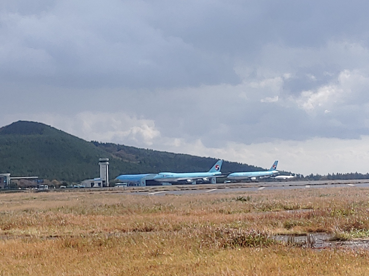 해발 350-400미터에 자리 잡은 제동목장. 그 안에 정석비행장이 있다. 퇴역한 비행기들이 전시되어 있었다. 오늘은 날씨가 좋지 않아 비행훈련을 하지 않지만 평상시에는 대한항공 직원들과 한국항공대학 학생들이 비행훈련을 한다고 했다. 설명을 하시는 임종도 목장장께서는 제주에 내려오신 지 17년이 되었다고 하신다. 앞으로도 제주에 눌러 살 계획이라고 하신다.
