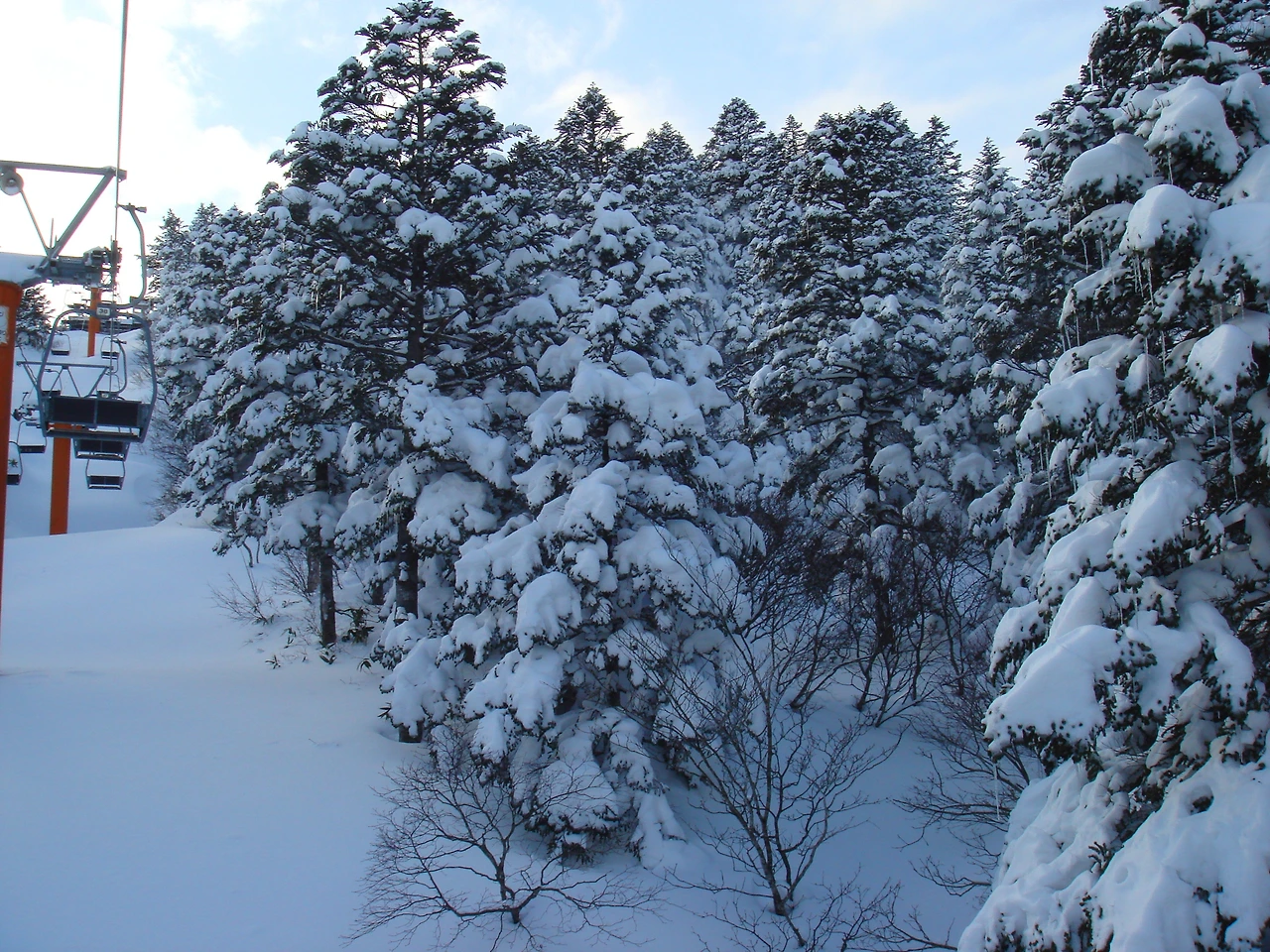나머지 일행들은 가볍게 점심을 먹었다. 해물볶음 가락국수 비슷한 것을 시켰는데 맛있다. 일본 사람들은 본래 음식을 적게 먹어서 아마도 식사량이 모자랄 것이라는 것은 기우다. 이것도 양이 대단히 많다. 전체적으로 음식을 평하자면 단맛이 많다. 그 외의 특색은 잘 느껴지지 않는다. 식사 후에 모두들 정상으로 올라가잔다. 거기 초보자 코스가 있다고, 믿기지 않았지만 그래도 도전해보고 싶은 생각에 같이 올라갔다. 곤돌라 내려 다시 리프트를 타는데 어휴 이건 경사가 장난이 아니다. 그 옆으로 스키 타는 사람이 존경스러울 정도다.