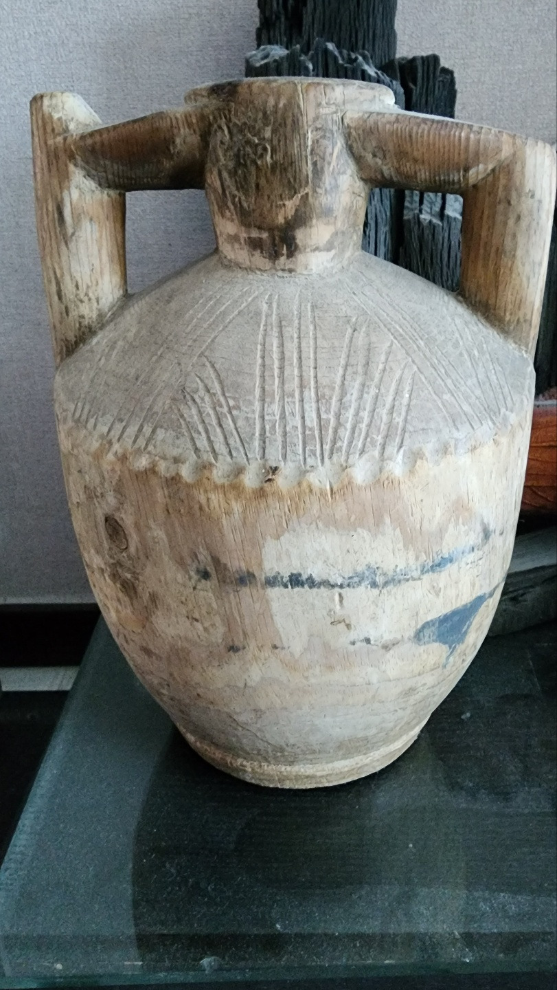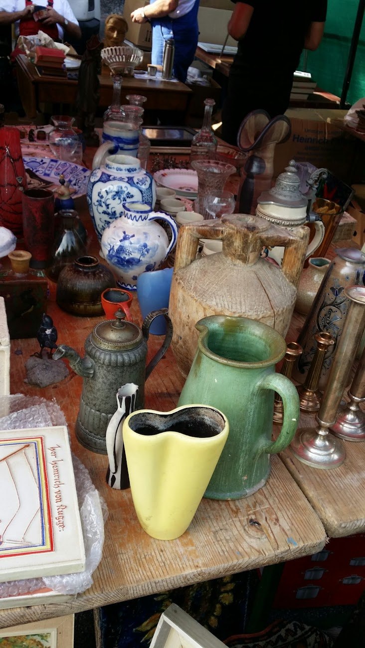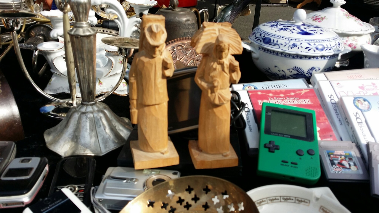 집에서 사용하던 물건 중 이제는 필요 없게 된 물건들을 교환하거나 팔고 있었다. 오랫동안 물건과 같이 살다가 작별하기로 결심해서 내놓은 물건들이 다른 사람들 눈에 띄면 그 사람에게 유용한 물건이 될 것이다. 생각보다 볼 것들이 많아 시간 가는 줄 모른다. 그중에 눈에 띈 물건은 나무를 깎아 만든 물병인데 살짝 금이 가있는 부분을 제외하고는 상태도 괜찮고 뭔가 분위기 있어 보인다. 돌려놓으면 집안 장식으로 잘 어울릴 것 같다. 5유로를 깎아 15유로에 샀다. 서로 횡재했다고 생각할 수도 있겠다 싶었다.