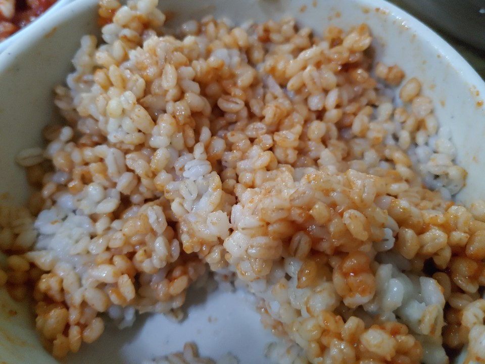 고추장은 매움의 날카로움은 무디게 만들고 시골의 정취를 한껏 느낄 수 있는 그런 아늑한 맛이다. 보리밥에 많이 비벼도 자극적이지 않다. 아들은 한 숟갈 뜨고 말았지만 처남과 내가 그 한 그릇을 다 먹었다. 보리밥은 밥알을 씹어먹는 재미가 있다. 보리는 위(胃)를 온화하게 하고 장(腸)을 느슨하게 하며 이뇨(利尿)의 효과가 있다고 한다. 파키스탄에서는 옛날부터 보리가 심장보 호제로서 오랫동안 사용되었으며, 보리의 식이섬유인 '베타글루칸'은 대장에서 담즙과 결합한 뒤 몸 밖으로 배설되면서 혈중 지질 수치를 낮추며 혈당 조절에도 도움을 주는 것으로 알려졌다고 한다. (네이버 지식백과) 보리밥 두 숟갈은 칼국수에 넣었다. 보리쌀의 탱글탱글한 식감과 칼국수 면발의 부드러운 맛이 입안에서 묘하게 논다.