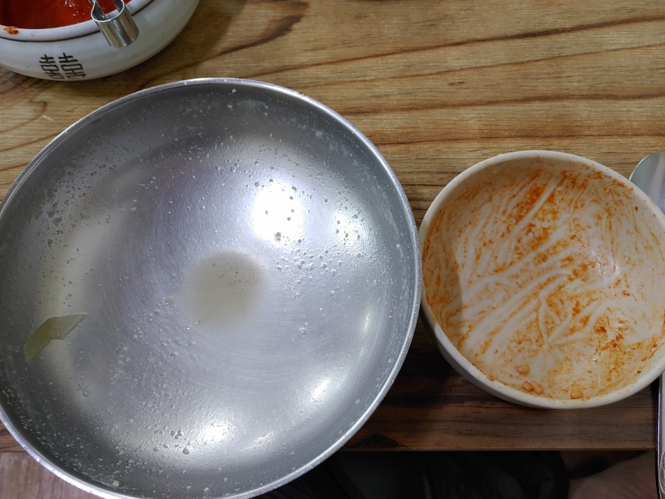 이렇게 으슬으슬하고 쌀쌀한 날씨에 노출된 사람들의 몸을 위로하기에 충분한 맛을 나는 느꼈다. 훌륭한 음식은 사실 별다른 말이 필요 없다. 멸치 칼국수를 반 정도 먹을 무렵 기억을 떠올려 보리밥을 따로 주문해야 하냐고 여쭈었다. 찾는 사람이 많지 않은가 보다. 한 그릇 푸짐하게 내주셨다. 이 보리밥은 그냥 주신다.