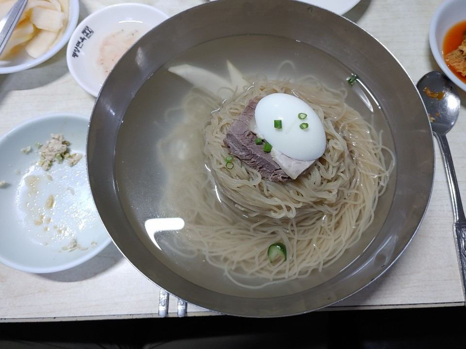 마침내 바닥을 드러낸 냉면그릇을 보며 아쉬움을 삼킨다. 마침내 바닥을 드러낼 것을 알고 먹는데 그래도 바닥이 드러난 냉면그릇을 보며 진한 아쉬움이 드는 건 어쩔 수 없다. 면수는 아직 온기가 남아있다. 그 면수는 메밀이 자라던 대지의 공기와 토양의 온기를 그대로 들고 온 것처럼 몸을 아늑하게 해 준다. 잠시 빈그릇을 바라보며 채워지는 것과 비어있는 것 사이의 관계에 대해 생각해본다. 삶이란 이렇게 채우고 비우고 하는 과정을 통해 사소하지만 의미 있는 가치를 발견하는 장이 아닐까라고 생각해본다.
