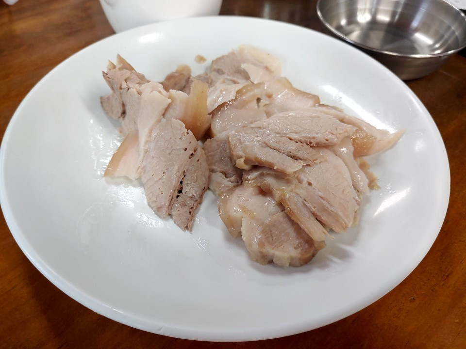사이드 메뉴인 만두와 편육을 먹기 전 따뜻한 면수를 마시면서 이 순간부터 모든 일은 잊고 오직 음식에 집중하기로 마음먹는다. 그렇게 하는 것이 음식을 통한 힐링의 첫걸음이기 때문에 오전에 무슨 일이 있었는지 오후에 뭘 해야 할지는 일단 접어둔다.