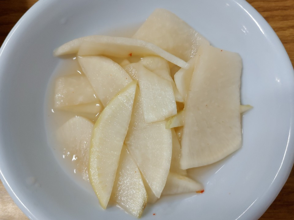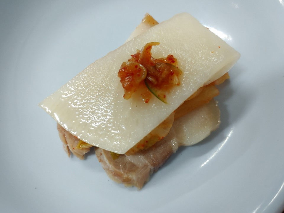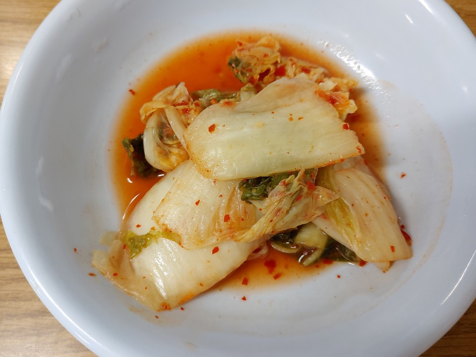 국수는 편육 사이사이로 스며들어 마치 편육과 국수 면발이 원래 하나였던 것처럼 맛을 느끼게 해 준다. 배추김치와 무김치는 각자의 존재감을 최소화시켜 냉면에 집중하도록 한다. 사람인자는 하나는 서있고 하나는 받쳐주는 것으로 구성된다. 그렇게 사람인자가 완성된다. 사람들도 마찬가지다. 서로가 서로를 받쳐주어야 일이 되고 빛이 난다. 무 김치와 배추김치는 냉면과 편육을 받쳐주고 있다. 그 위에 살짝 얹은 소스는 그 냉면과 편육과 김치들의 맛을 반계단 정도 끌어올리고 있다.
