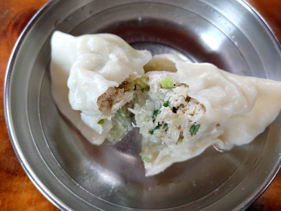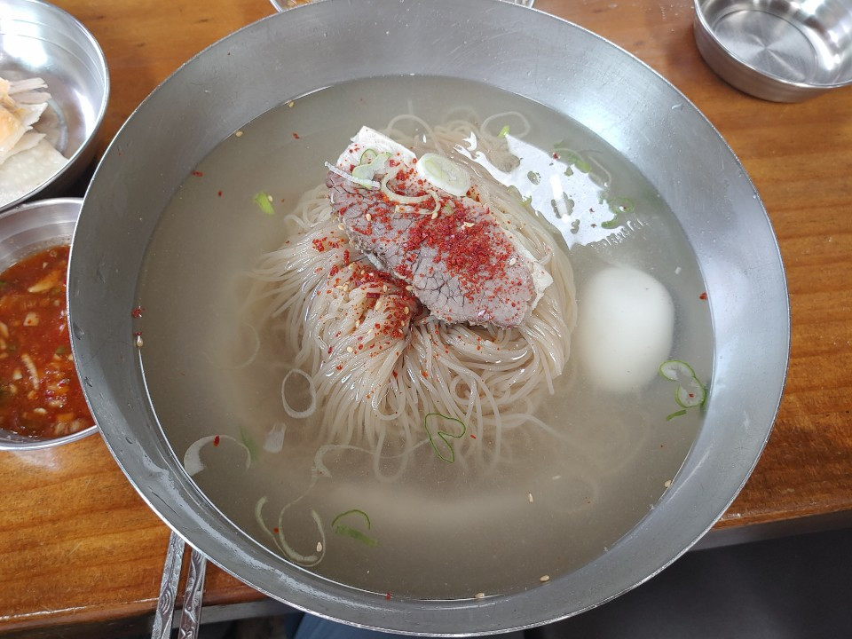 냉면이 나오기 전 촉촉한 만두를 우선 먹기 전에 간장을 한 술 떠서 골고루 적시고 숟가락으로 4 등분한다. 2등분은 한 입에 넣기 어렵다. 그렇게 나누는 과정조차 즐겁다. 숟가락에 와 닿는 만두피와 만두소의 질감조차 촉촉하기 때문이다. 만두 하나만으로도 충분히 시장기를 잠재울 수 있다. 그리고 하나 더 먹으면 냉면의 식감이 떨어질 수 있으므로 자제한다.