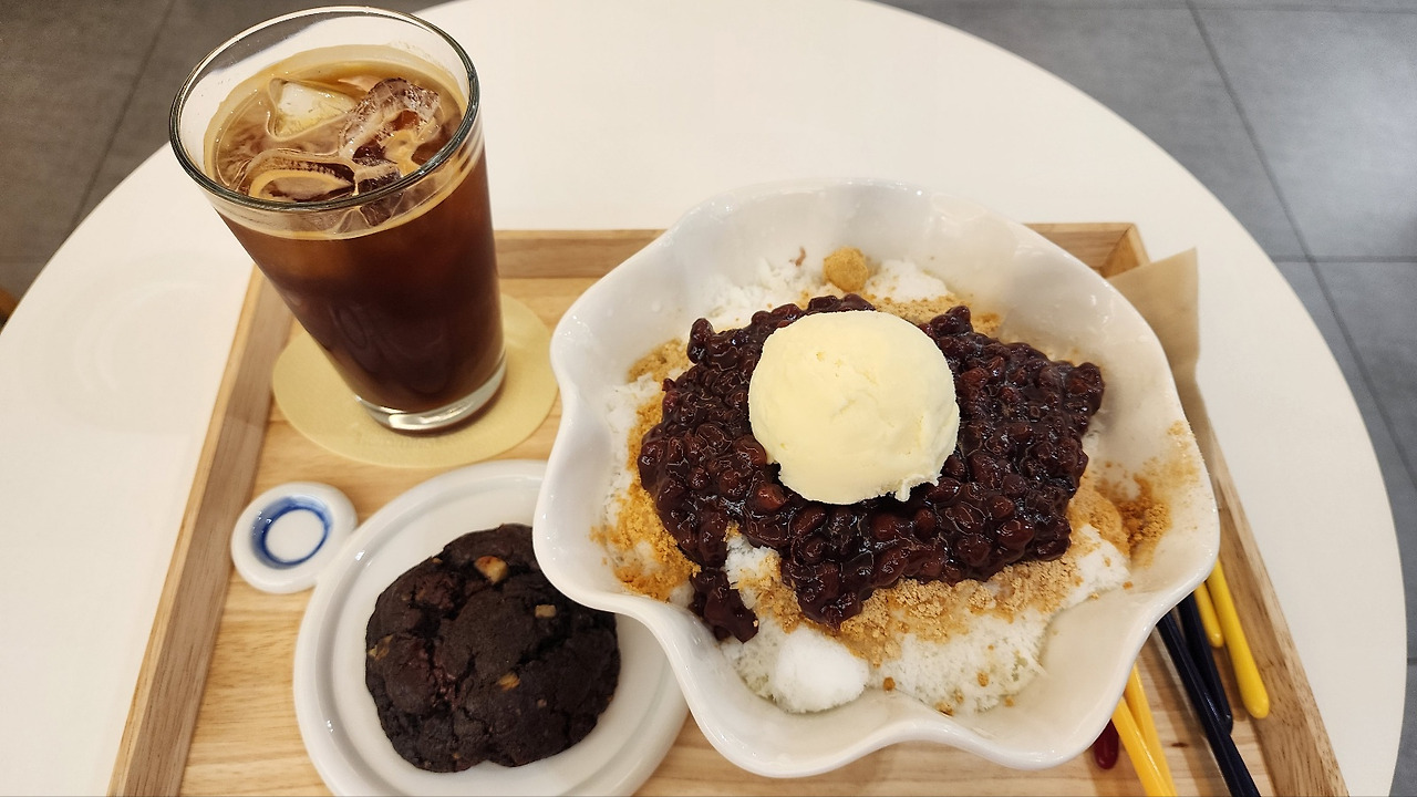 식사후에 먹는 간단한 음식인 디저트는 프랑스어로 '식사를 끝마치다'라는 단어에서 유래되었다고 한다. 끼니와 끼니 사이에 먹는 간식과는 달리 입가심 정도로 생각하면 된다고 하는데 오늘은 입가심을 제대로 해보려고 세종류를 주문한다. 오리지널 쿠키와 초코 쿠키, 팥빙수와 아이스 아메리카노. 먹고난 뒤에 근력운동을 할 생각을 하면 먹는 행위 자체도 더더욱 즐거워진다.