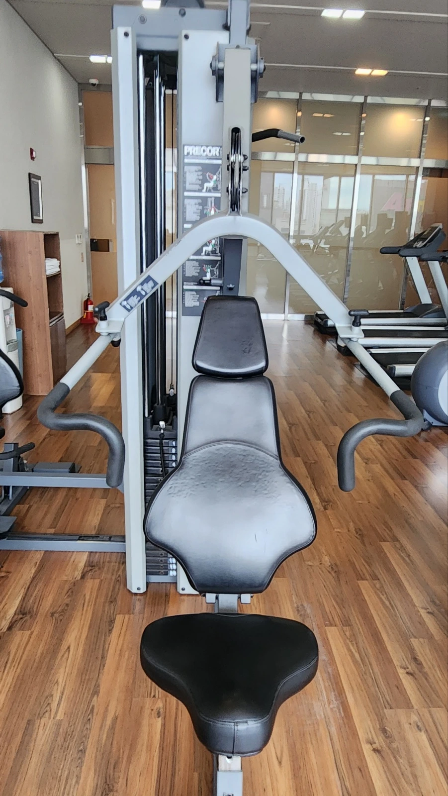 랫풀 다운 기구 역시 평소 사용하던 것과는 달라 시작지점을 찾고 세팅하는데 다소 시간이 걸렸다. 그동안 내가 만들어온 플랫폼을 다듬는 게 중요하므로 무게는 신경 쓰지 않는다. 기구가 작동하는 미세한 소리와 나의 호흡이 채우는 이 공간 이 시간의 느낌이 너무 좋다. 기구는 단 한 개 분이지만 네 가지 종목이 가능하다. 그 외에는 덤벨만 있다. 덤벨로 할 수 있는 종목은? 20파운드 덤벨을 들고 스쾃 4세트, 10파운드 덤벨을 양손에 들고 좌우로 레이즈, 상체를 완전히 접은 상태에서 레이즈, 전방으로 레이즈, 그리고 처음엔 20파운드, 나중에는 25파운드를 들고 한 손 레이즈 이렇게 다섯 종목을 소화한다. 근력운동을 마무리하는 종목은 스피닝 자전거.