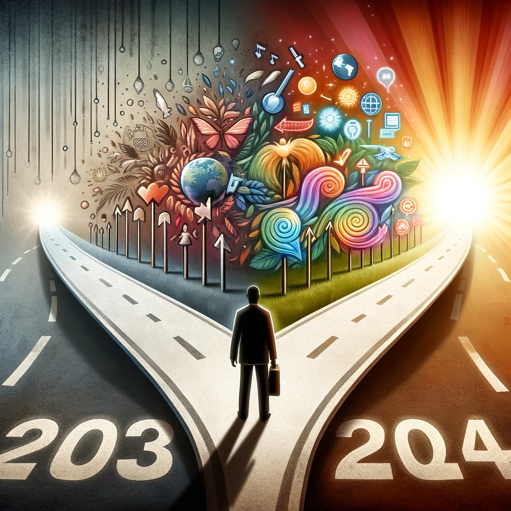 올 한 해 해야 될 일 중 이 글을 읽는 다른 분들과 나누고 싶은 메시지가 있다. 2023년 연말에 챗지피티 유료 서비스에 가입했는데, 벌써 한 달치 서비스 구독료를 뽑은 셈이다. 챗지피티가 그려주는 새로운 그림들이 나의 글과 매칭되면서 열어 놓은 새로운 세계!! 키치들에게 현혹되지 마시고, 챗지피티와 대화를 하면서 새로운 세상이 만들어지고 있는 가운데 나는 사람들과 어떤 내용의 콘텐츠를 공유할 것인지 생각해 보는 것을 적극 추천한다.