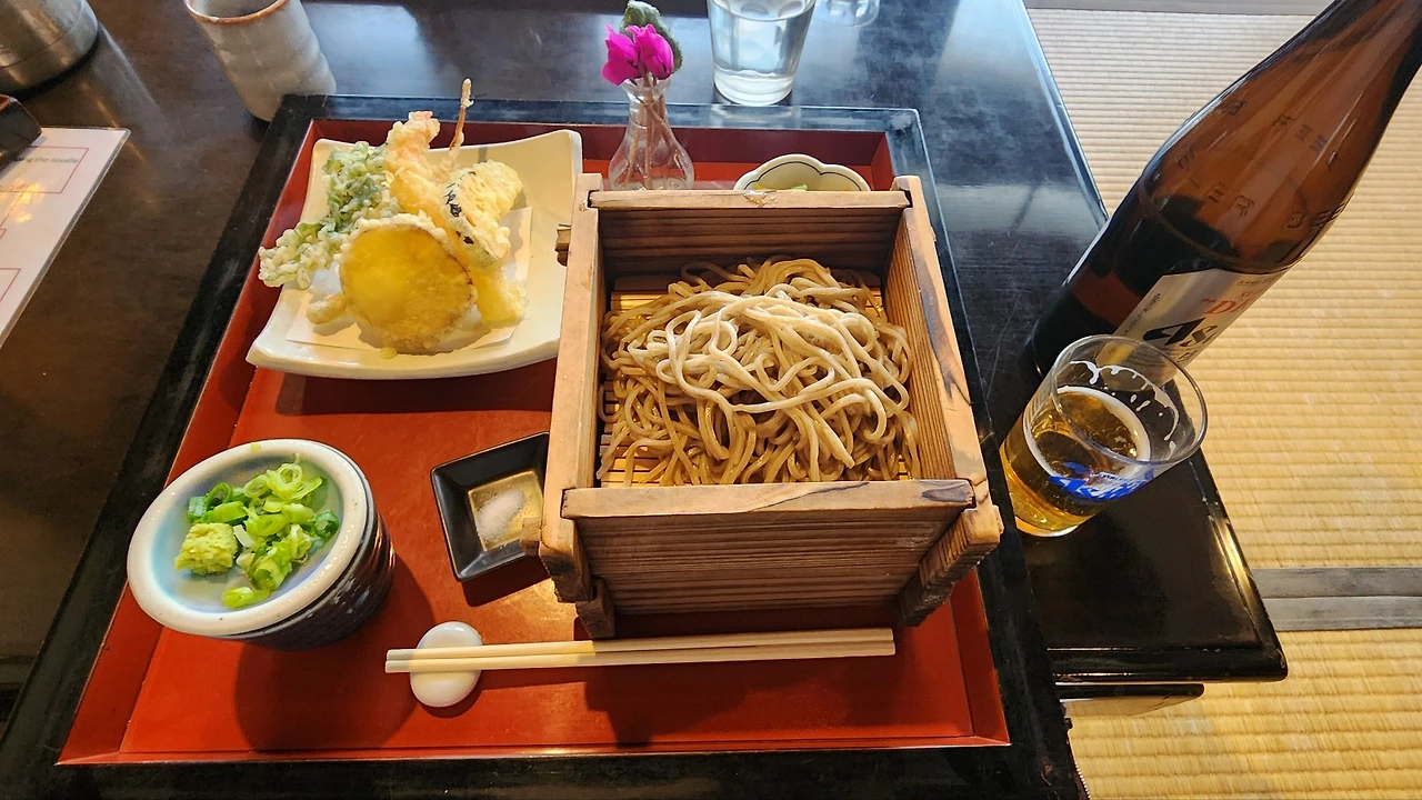 여섯 명 모두 메밀정식을 선택했다. 생맥주가 없어 병맥주를 주문했는데, 맛이 비슷하다. 메밀은 쫀득쫀득했다. 고추냉이와 파를 한 접시 더 달라고 해서 국물에 넣었는데, 욕심이 과했다. 고추냉이로 입안이 얼얼하다. 물을 계속 부어 연하게 만들어 먹었다. 한 번은 눈물이 핑 돌 정도로 고추냉이가 제대로 자극한다. 자극하고는 곧바로 빠져나가는 그런 느낌이다. 튀김은 반 정도 남겨놓고 나왔다. 예전에는 아주 좋아했던 음식인데, 튀긴 밀가루가 장 생태계에 미치는 좋지 않은 영향을 공부하고 난 뒤로는 가급적 먹지 않으려 한다. 그리고 먹게 될 때는 아주 맛있게 먹는다. 빈도를 줄이는 것이 중요하다. 안 먹을 수는 없기 때문이다. 그리고 튀긴 음식은 맛있지 않은가?