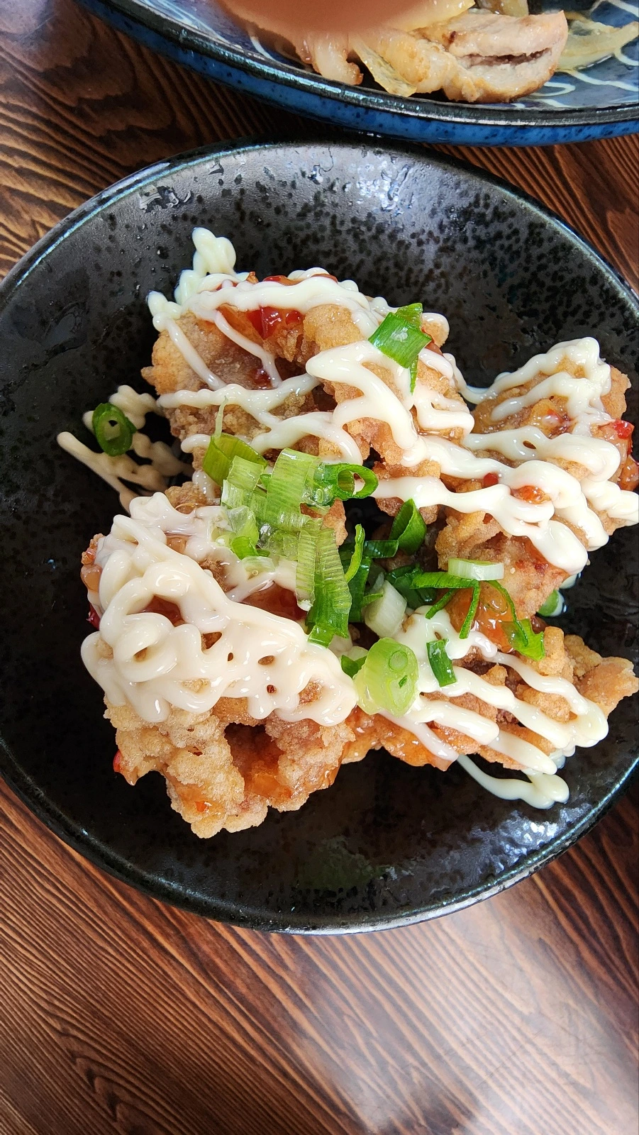 역으로 돌아와 이번에는 오즈역을 향했다. 맑은 날씨에 이렇게 상쾌하게 걸으며 서로 깔깔대고 웃는 모습이 소풍 나온 거 같다. 오즈의 마법사의 오즈는 아닐 것이다. 점심을 가볍게 먹어둔 덕분에 간식을 먹으러 갈 수 있었는데, 캔맥주를 판다고 해서 다른 곳을 찾아 이동한다. 가락국수집을 만났다. 아쉬운 대로 병맥주와 치킨 가라아게, 새우튀김, 돼지고기구이 등을 주문한다. 가격이 2천 원대에서 5천 원대라 전혀 부담이 없다. 이번에 다니던 직장을 옮기게 된 후배님이 간식을 쏘기로 해서 기분 좋게 먹는다. 나도 그 이동에 약간의 도움을 줄 수 있었기 때문에 뿌듯했다. 치킨 가라아게는 겉바속촉의 진리를 잘 구현했다. 국물이 먹고 싶어 라멘을 주문했는데, 해산물 베이스의 육수가 감칠맛이 나고 맛있었다. 어느덧 빈병이 수북이 쌓였다. 마쓰야마로 가는 열차에서 20분 정도 꿀잠을 잤다. 몸 전체가 개운하다.